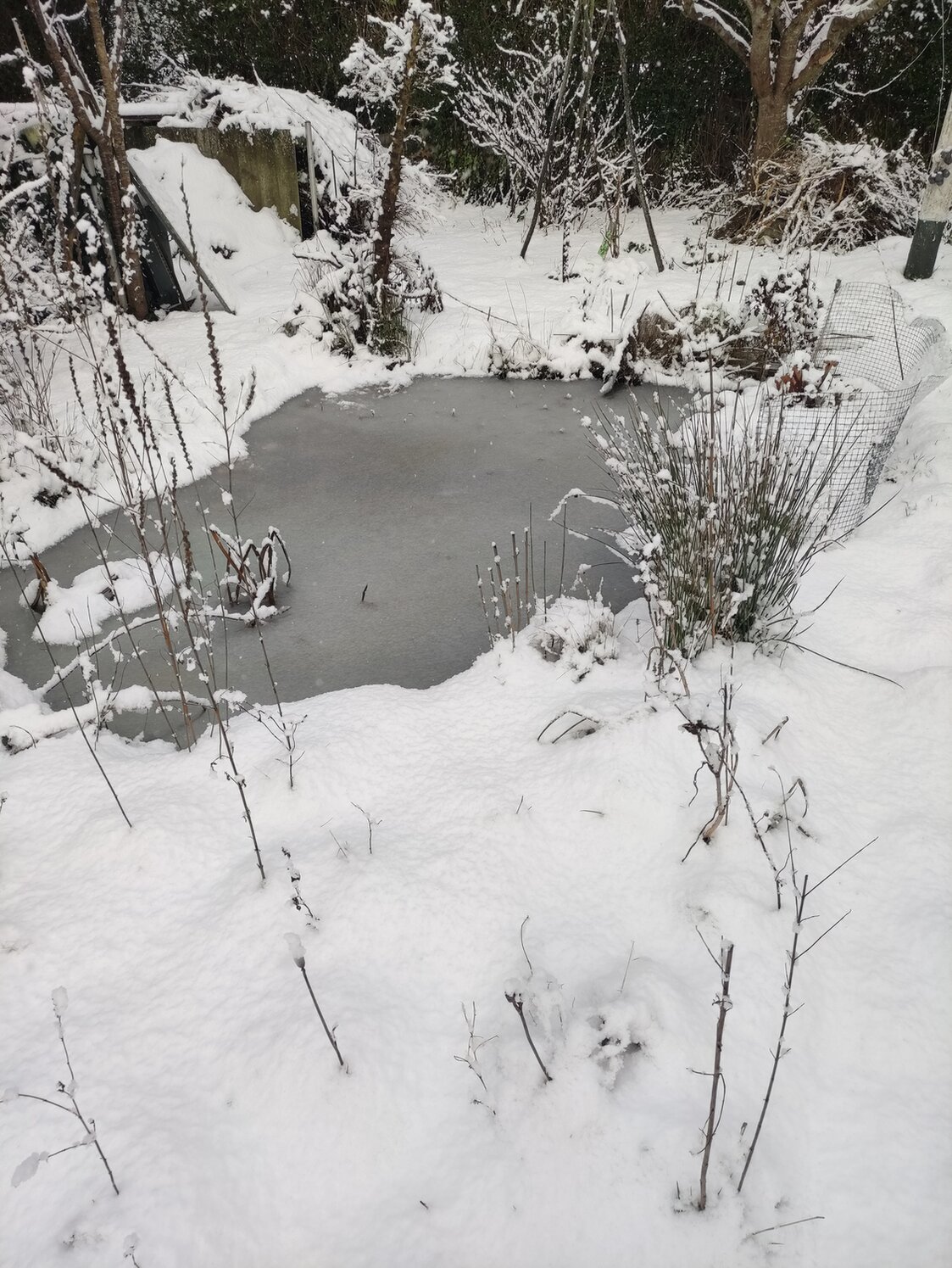 Still und Starr ruht der Tümpel. Winterstimmung im Küstengarten.