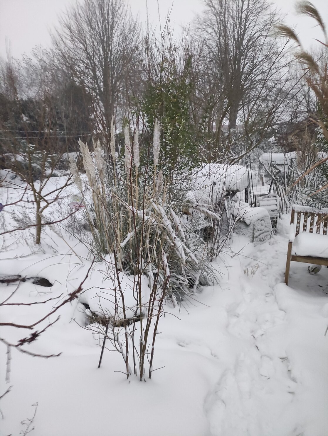 Seit heute Nacht fegt ein Schneesturm bis Windstärke 11 durch den Garten.