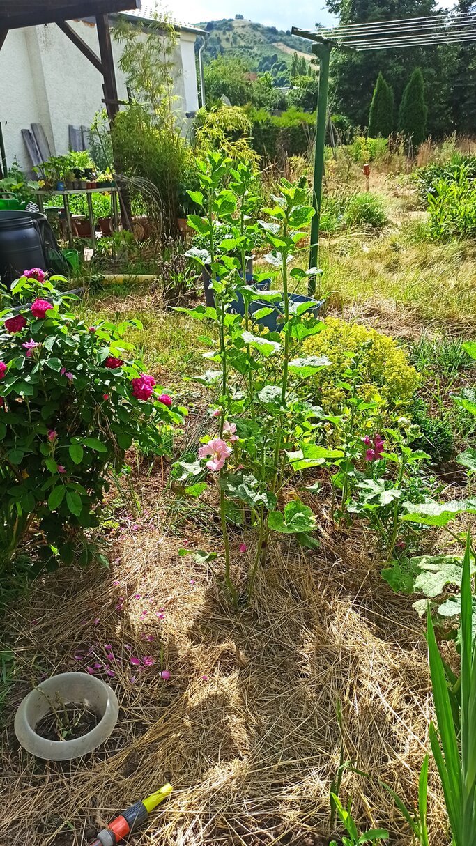 Die aus Samen gezogenen Stockrosen machen mir viel Freude.