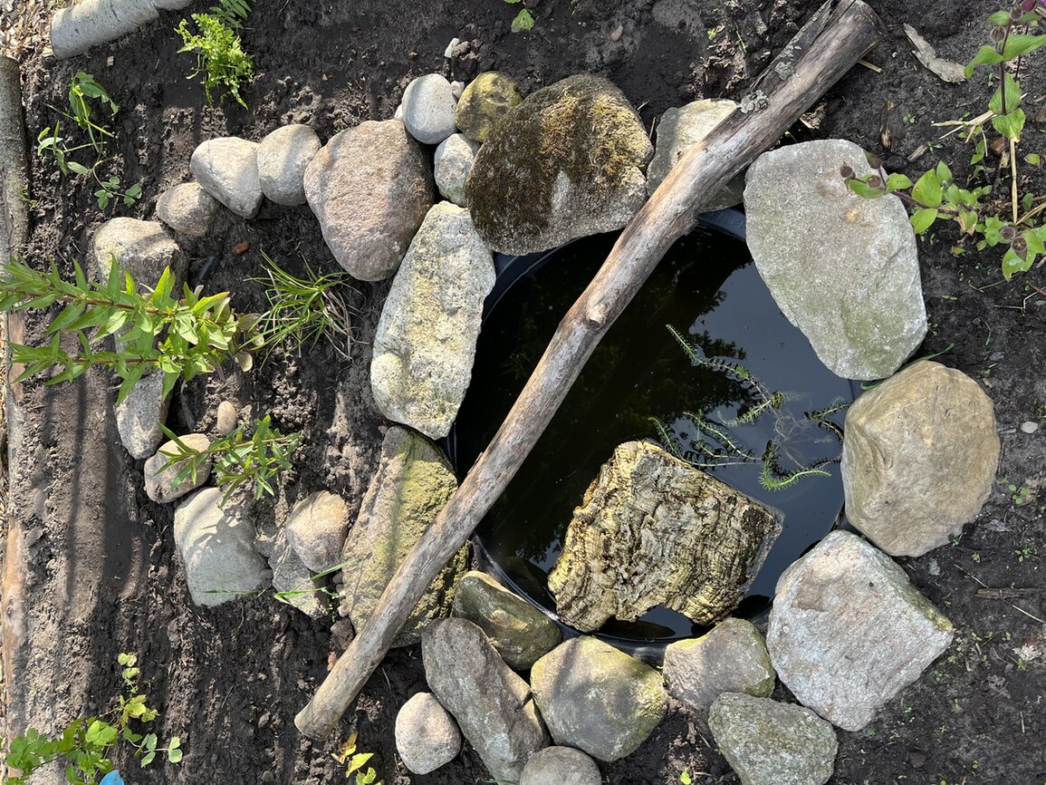 Im Bauerngarten haben wir einen kleinen Teich inklusive benachbarten Sumpfbeet angelegt und mit heimischen Pflanzen umsäumt. Mal sehen, welches Tier dort mal einziehen wird.