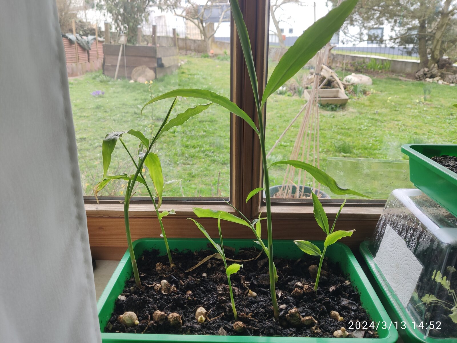 Meine Ingwer-Knollen fühlen sich dieses Jahr richtig wohl an der Fensterbank (über der Heizung).