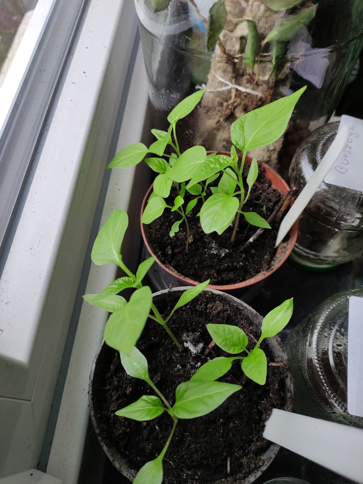 Meine Auberginen und Paprika's musste ich schon (aus den Anzuchtsets) umpflanzen, sie brauchten mehr Erde und Platz.