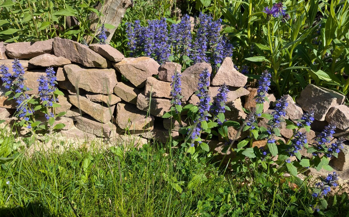 Der Genfer Günsel sieht von der Erscheinung anders aus, er ist nicht so bodendeckerartig, sondert bildet eher dichtere Polster und die Blütenstände sind kräftiger und höher. Außerdem mag er es richtig trocken, sein Verwandter der Kriechende Günsel liebt es dagegen eher feuchter. Ich mache die Tage mal von beiden Fotos und stelle die zusammen hier ein, dann sieht man die Unterschiede schön.