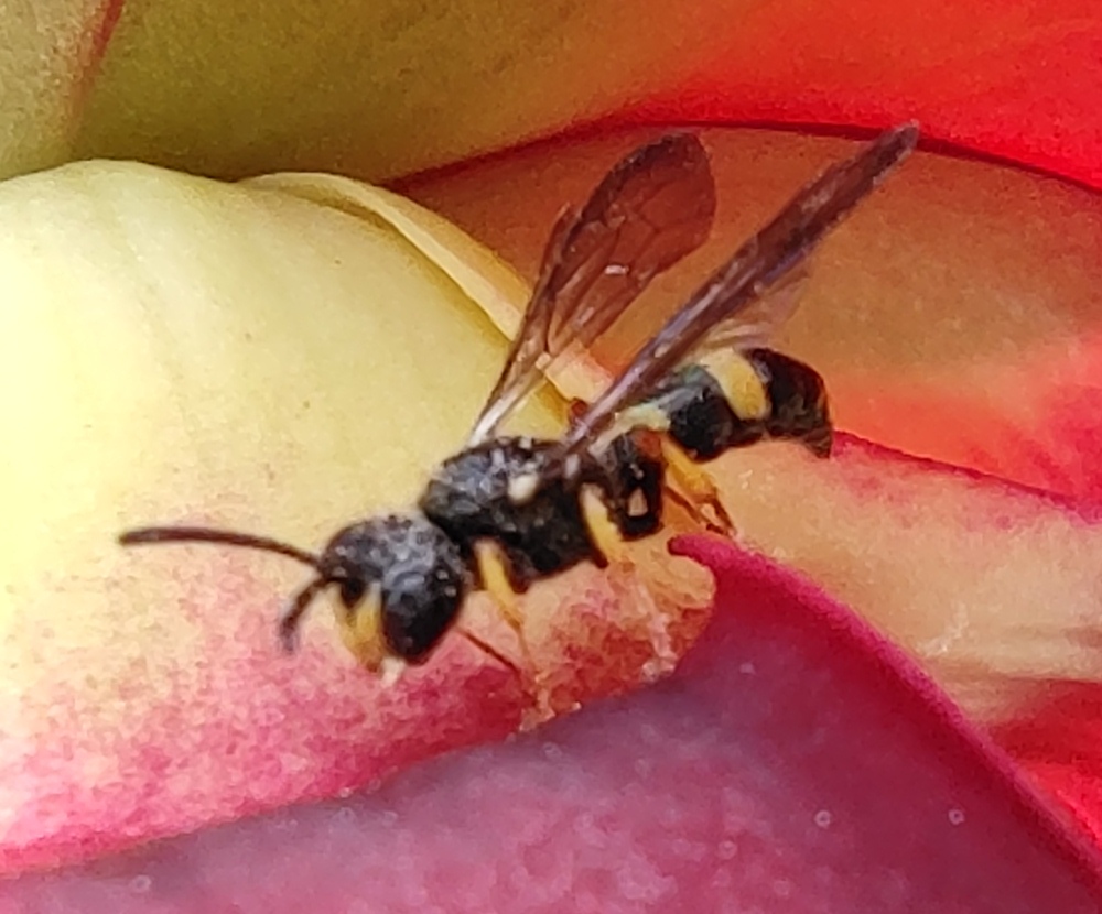 Als ich heute die Blüten meiner Schlauchpflanzen bestäubt habe, habe ich dieses ca. Ein Zentimeter großes Insekt in einer der Blüten gesehen.