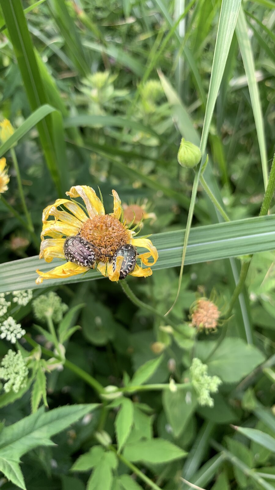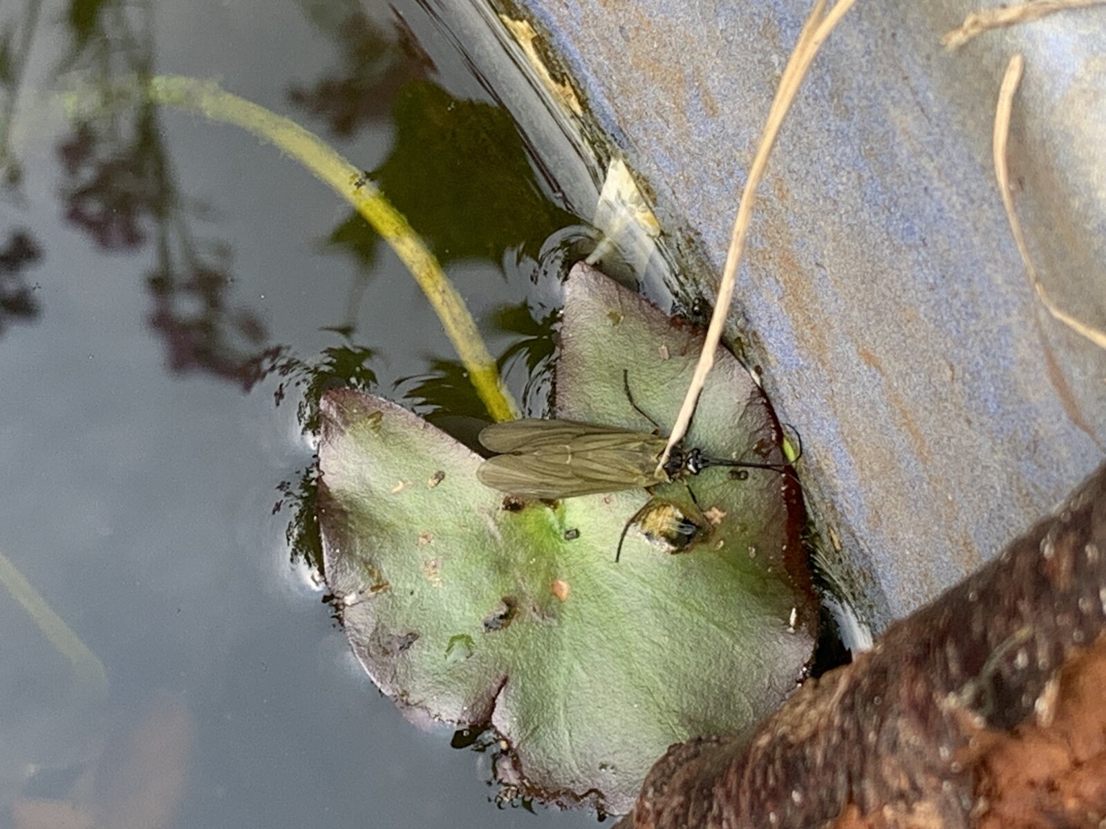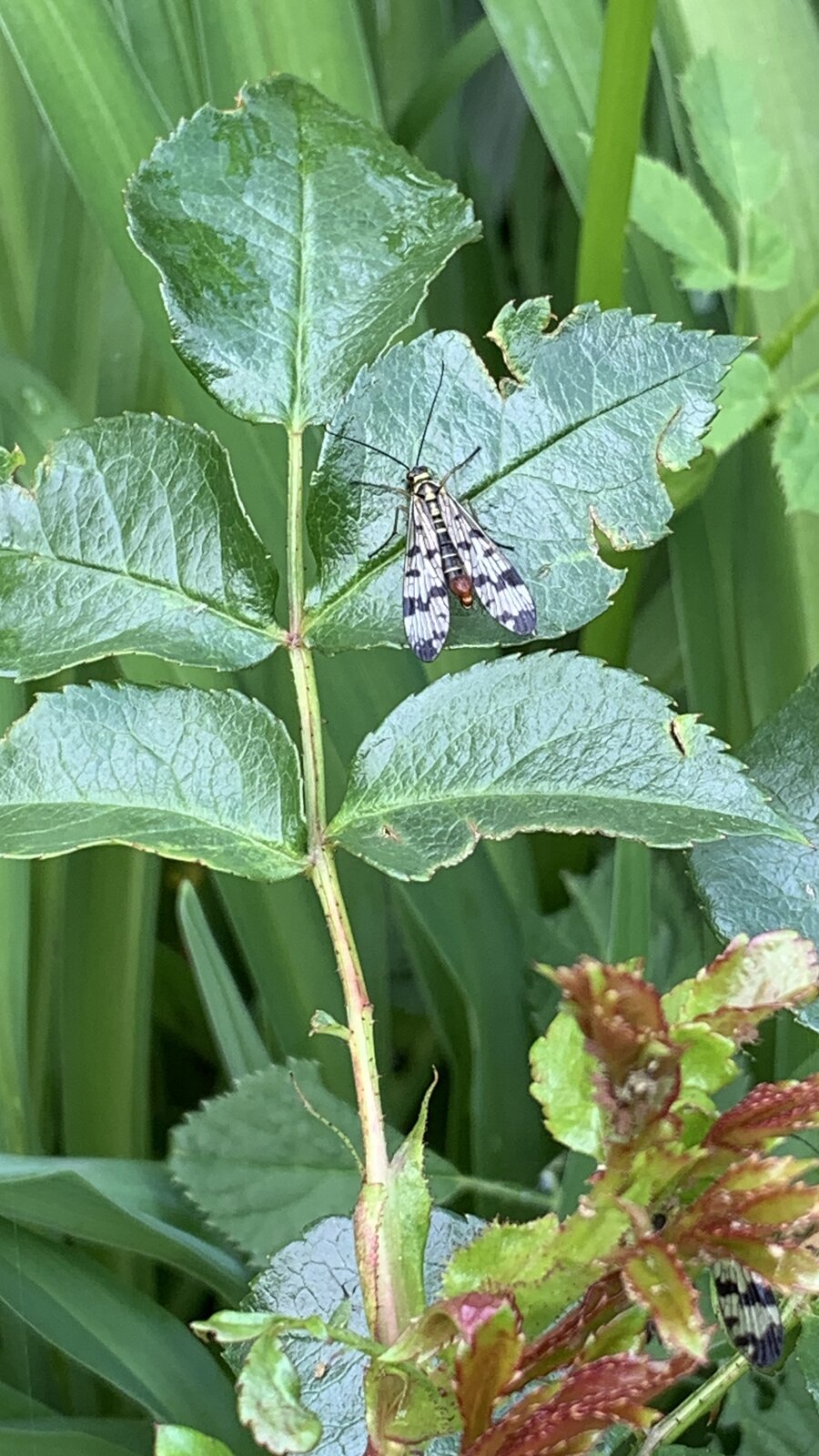 Es gibt viele Insekten, die ich aber leider schlecht benennen kann. Auf jeden Fall viele unterschiedliche Hummeln, Gall- und blattschlupfwespen, mauerbienen, Hornissen, wildbienen in allen Größen, Spinnen und Wanzen. Große Libellen kommen zu Besuch, Marienkäfer, rosenkäfer, pinselkäfer,usw.