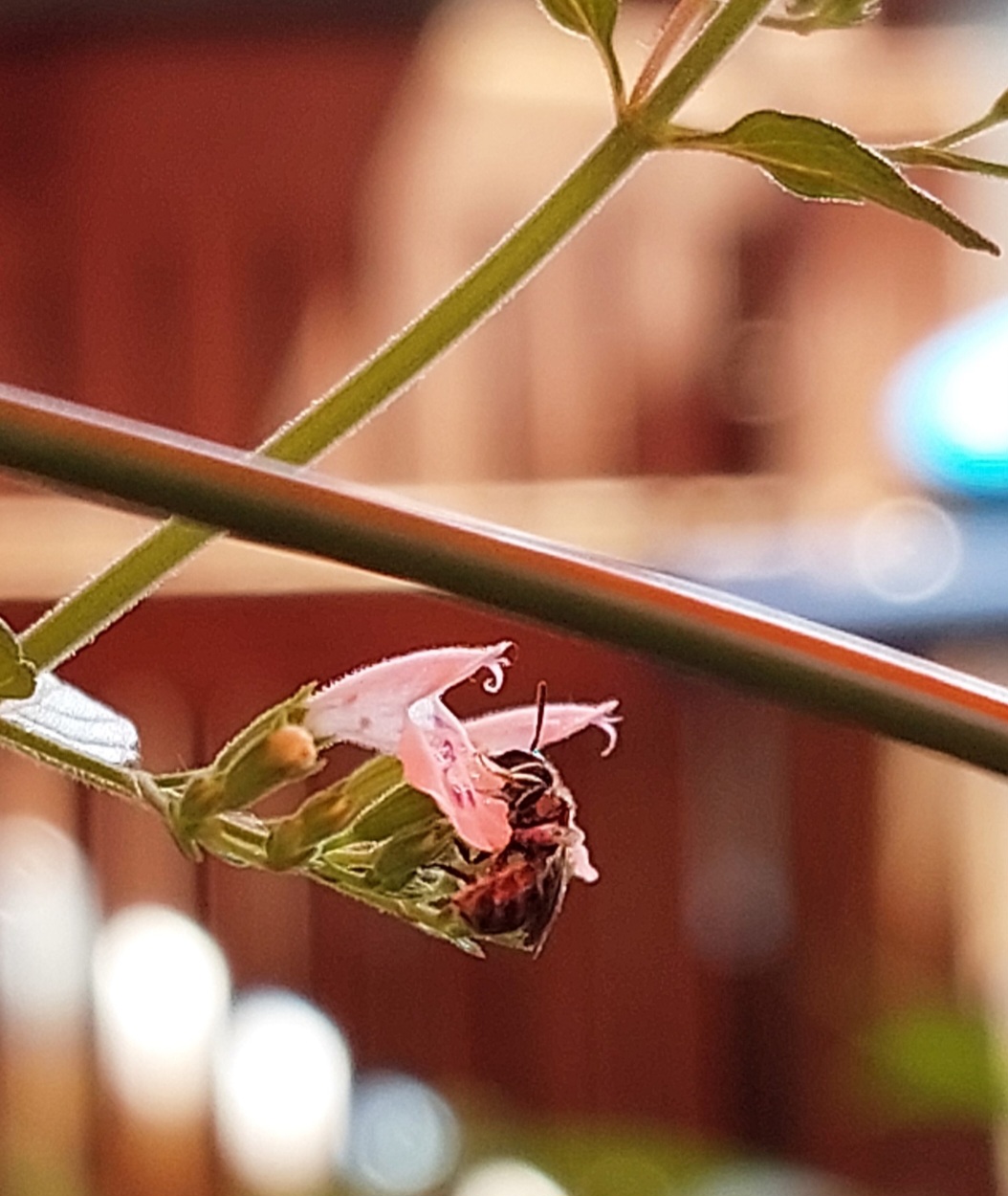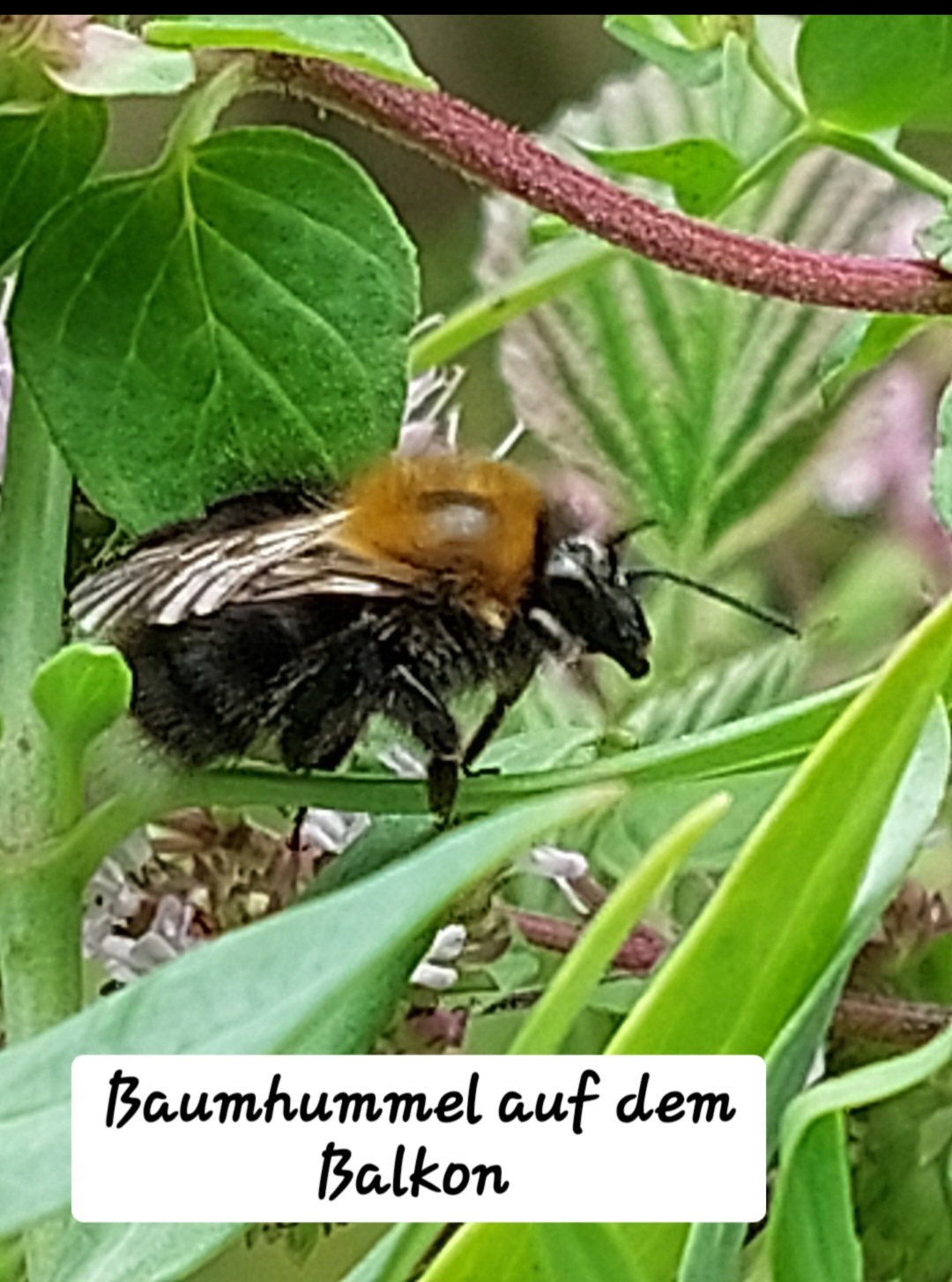 Etliche kleine Wildbienen besuchen den Balkon, vier verschiedene Hummelarten - darunter Baumhummeln und Steinhummeln - diverse Nachtfalter und kleine Tagfalter oder Motten oder was auch immer. Eine große Raupe habe ich am Boden gefunden, auch an den Himbeeren haben kleine Raupen gefressen.