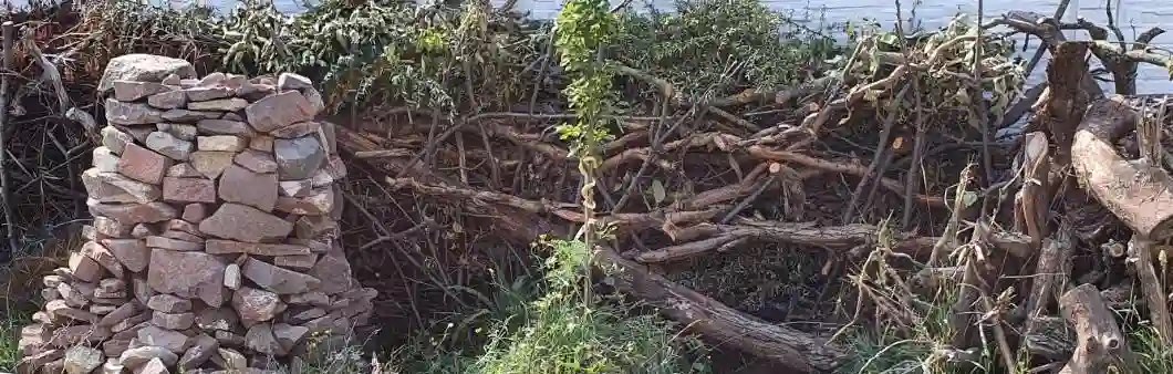 • 40m Totholzhecken an dem vorhandenen Betonzaun, der fast um das ganze Grundstück geht
