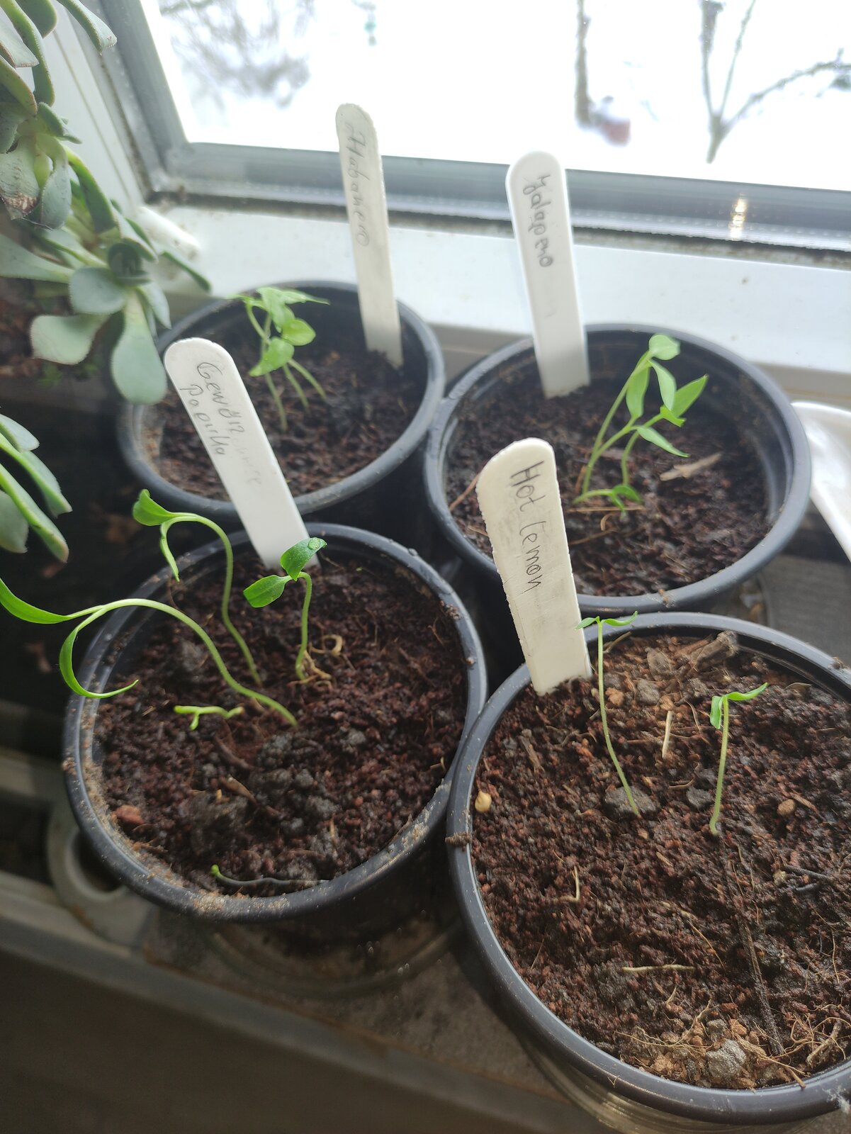 Ich habe Physalis, Liebstöckl, Roter Paprika, Glockenpaprika, Jalapenos ( im Haus warm) , Winter-Porree, Winter- Brokkoli und Sellerie ( im unbeheizten Wintergarten) in den Anzuchtschalen ausgesät.
