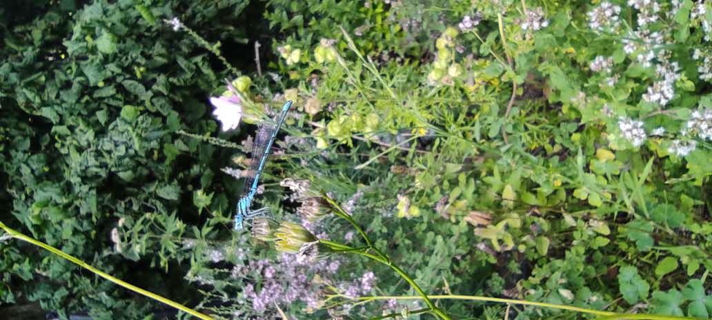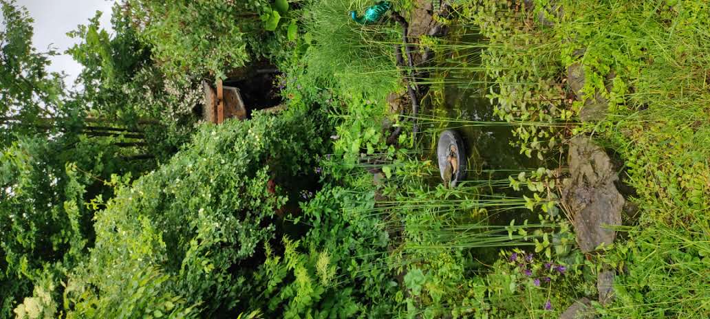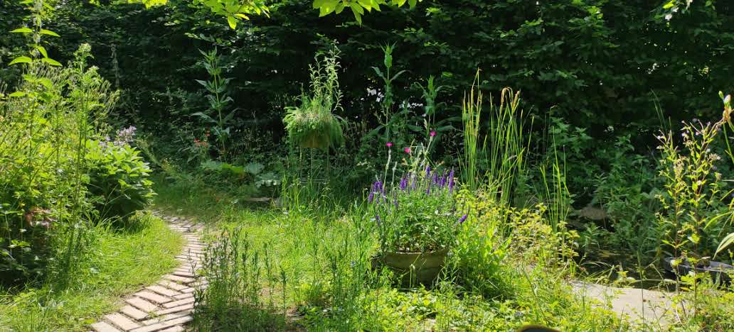 2021/22 habe ich zusätzlich zu unserem alten „Pütt“ (Wasserloch mit Molchen) einen Teich von ca. 3x2m angelegt. Dort tobt das Leben und wir freuen uns über viele Libellen, Hornissen, Schwebfliegen, Schmetterlinge, etc. Auch einige Molche sind umgezogen und ein Frosch wurde gesichtet. Daneben und dahinter gibt es Magerbeete mit vielen insektenfreundlichen Stauden. Für das geplante Sumpfbeet mit Wasserlauf fehlte 2022 die Zeit und um die vorhandenen Pflanzen unterzubringen habe ich ein provisorisches Sumpfbeet in einer alten Zinkwanne angelegt. Mit großem Erfolg. Das Projekt wird dieses Jahr wieder aufgegriffen.