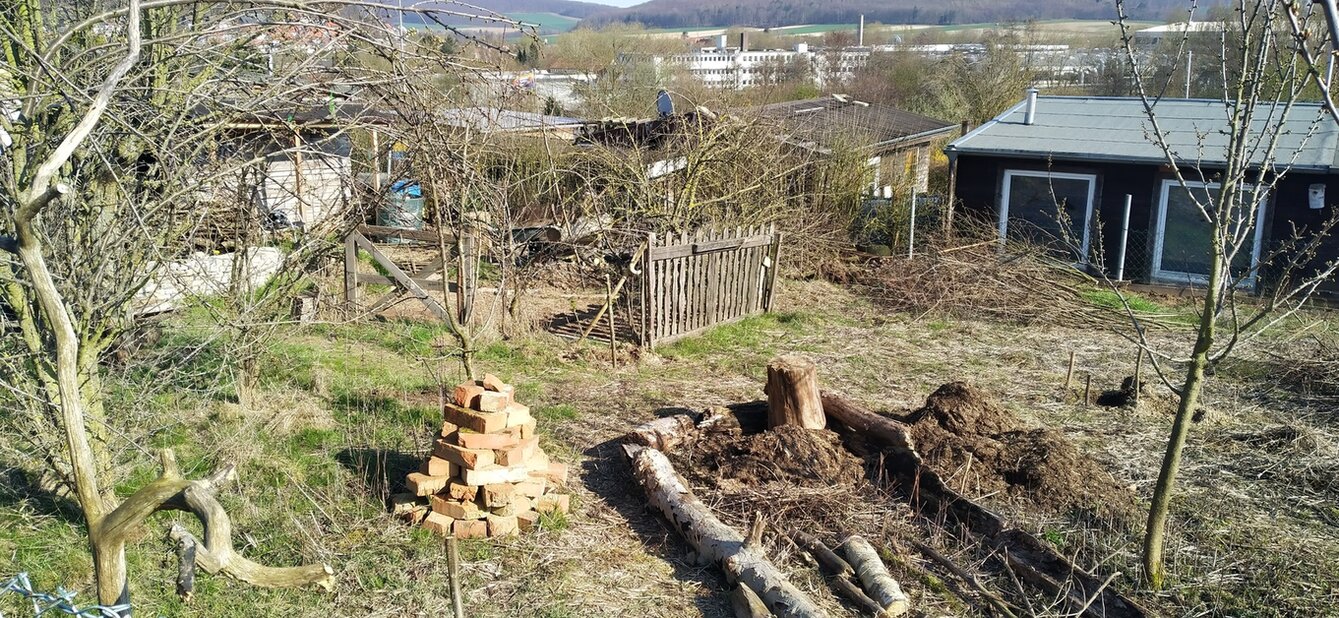 Bei Kleinanzeigen hatte ich in der Zwischenzeit ein altes Bett mit richtigem Gestell und federbestücktem Rost ergattert und kann seither auch in der Hütte übernachten. Dazu war es nötig das durchtropfende Regenwasser innerhalb der Hütte nach außen zu leiten. Es hat gut funktioniert - Fotos kommen später.