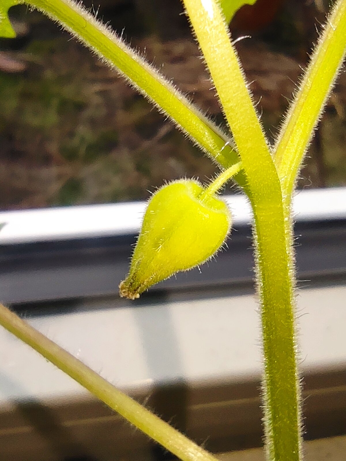 Eine der Ananaskirschen auf der Fensterbank bildet schon eine Frucht.