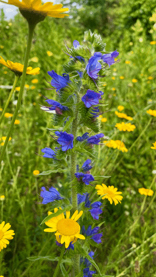 Die Hotspotzone besteht aus verschiedenen Wiesentypen – von nährstoffreich bis mager. Auf Teilflächen wurde die Grasnarbe entfernt und der Oberboden abgetragen, anschließend wurden unterschiedliche Saatgutmischungen ausgebracht. Eine besonders magere Sandmagerrasenfläche entstand zum Beispiel dort, wo Ende 2024 ein Häuschen abgerissen wurde. Da dort über Jahrzehnte keine Nährstoffe eingetragen wurden, war der Boden an dieser Stelle entsprechend mager und gut geeignet. Langfristiges Ziel ist es u.a., die Flächen mager zu halten und durch Mahd weiter abzumagern.