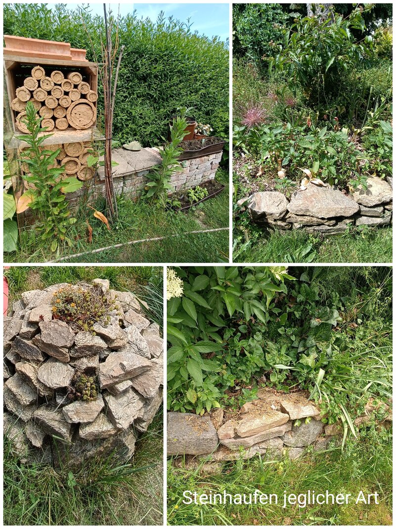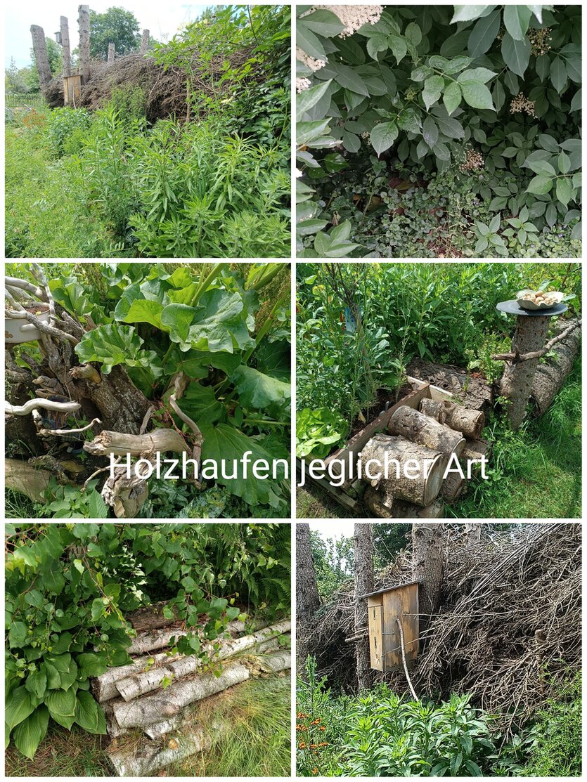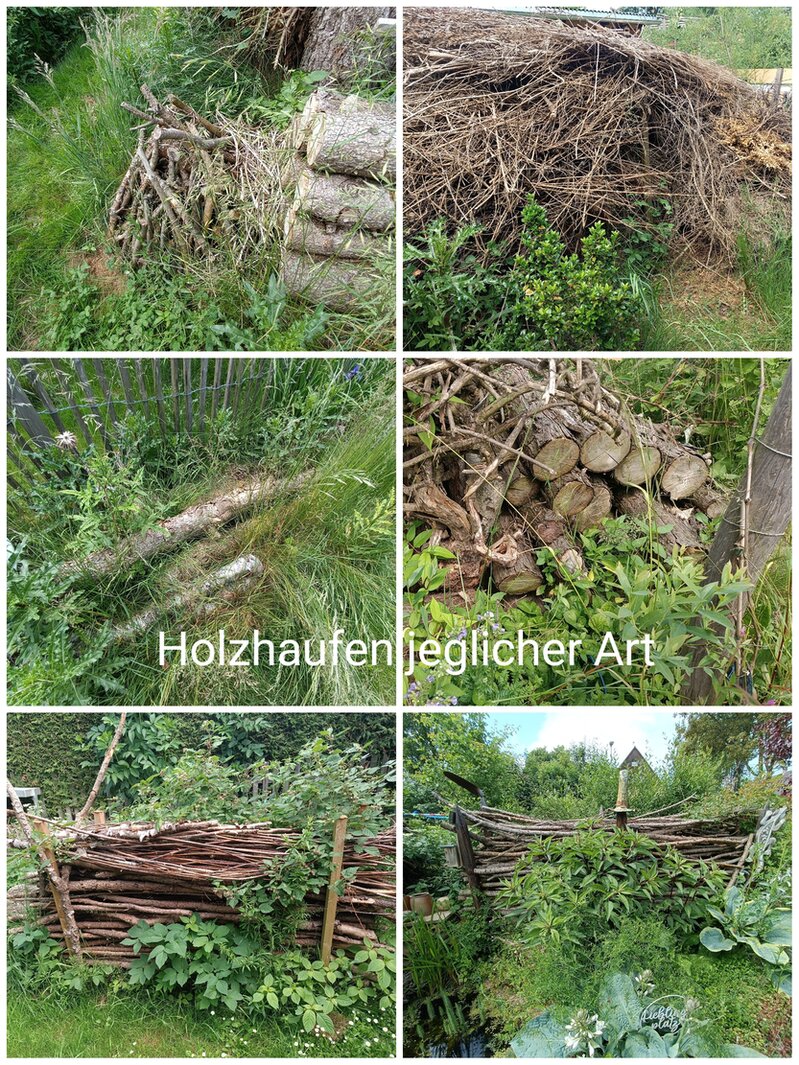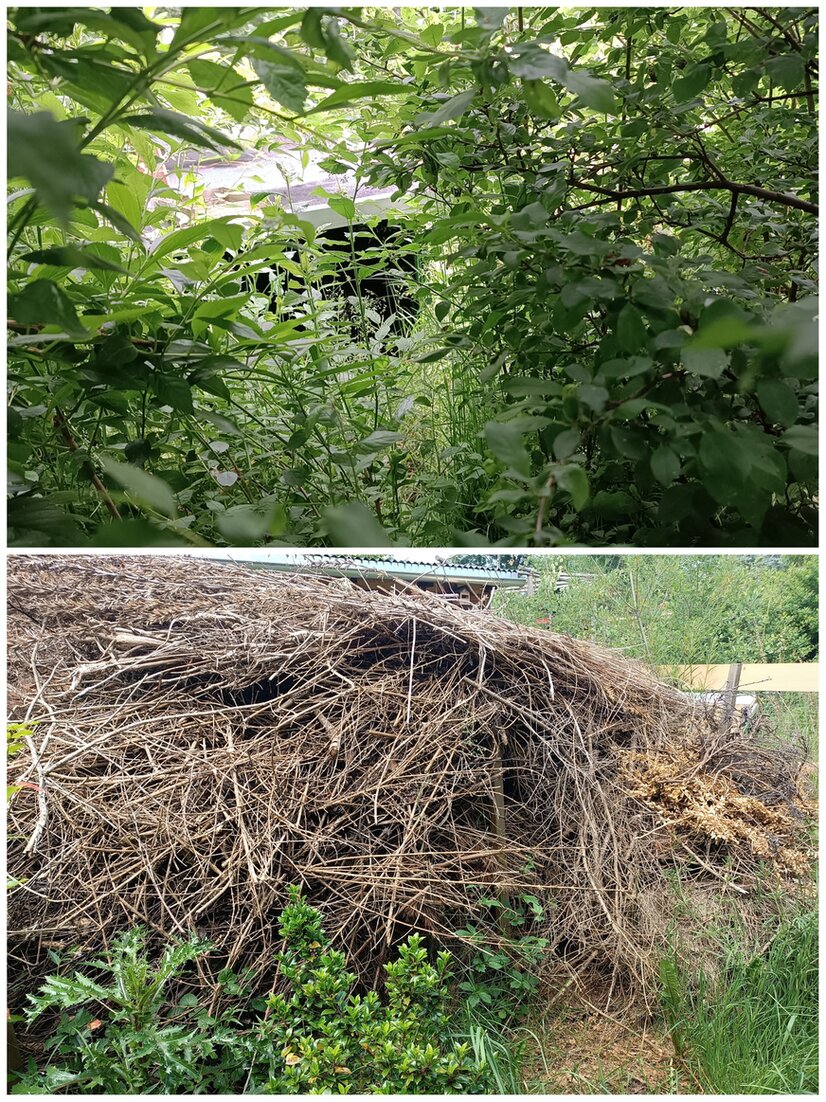 Viele wunderbare natürliche Schlafmöglichkeiten unter der Benjeshecke, Ast- und Totholzhaufen für die Stachelritter. Offene Kompoststellen...super !
