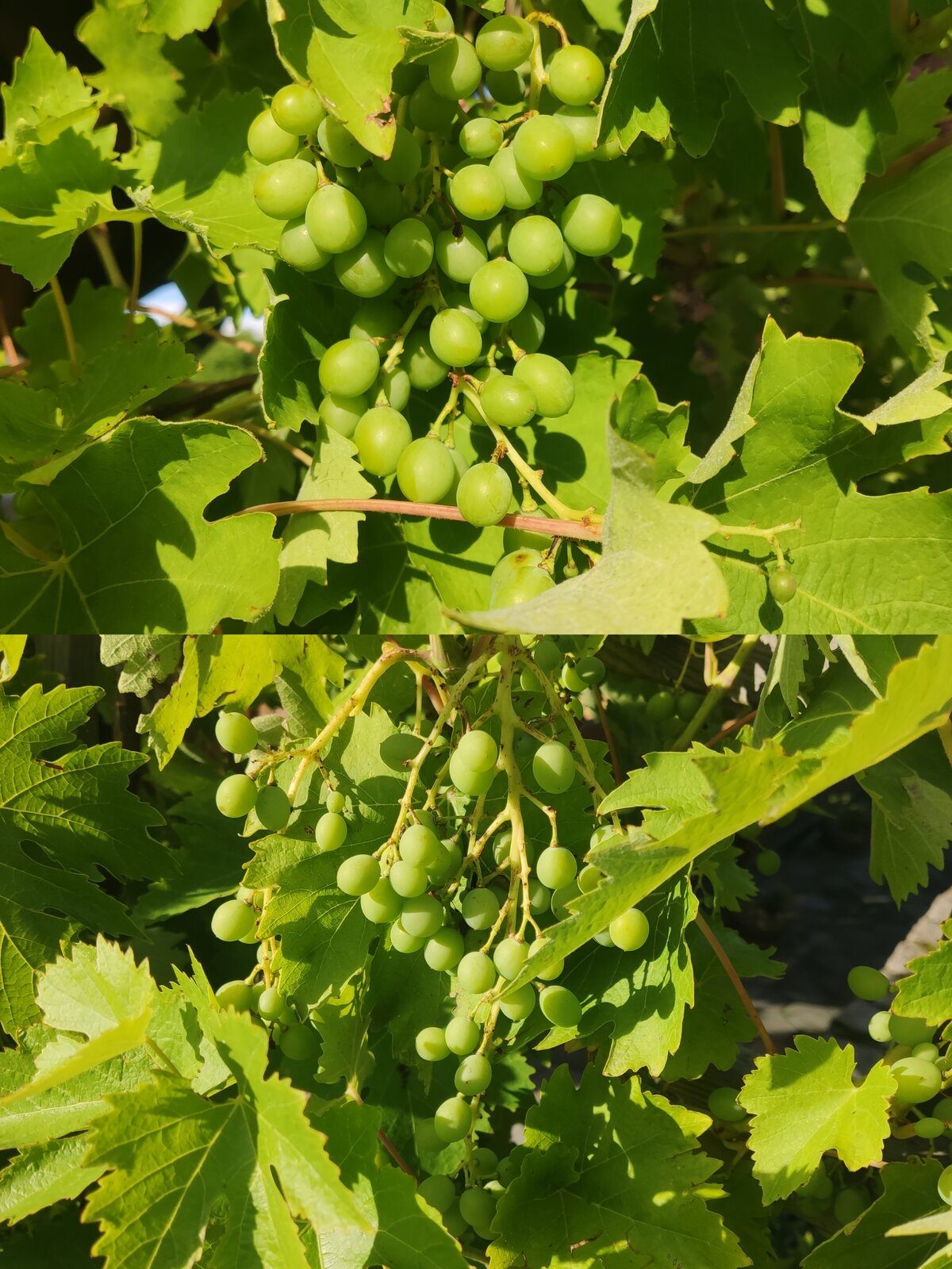 Der Wein schien erst kümmerlich mit wenigen Trauben, aber nun sehen sie gar nicht so übel aus.
