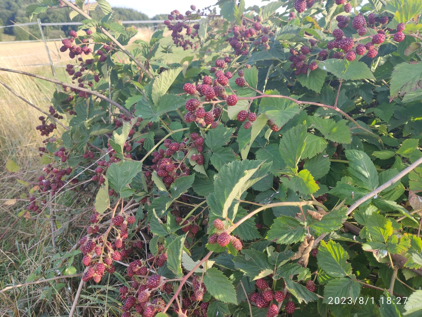 Die Brombeeren sind wie ein schützendes Dach und sind voller Beeren....jeden Tag gibt's jetzt frische Brombeeren.