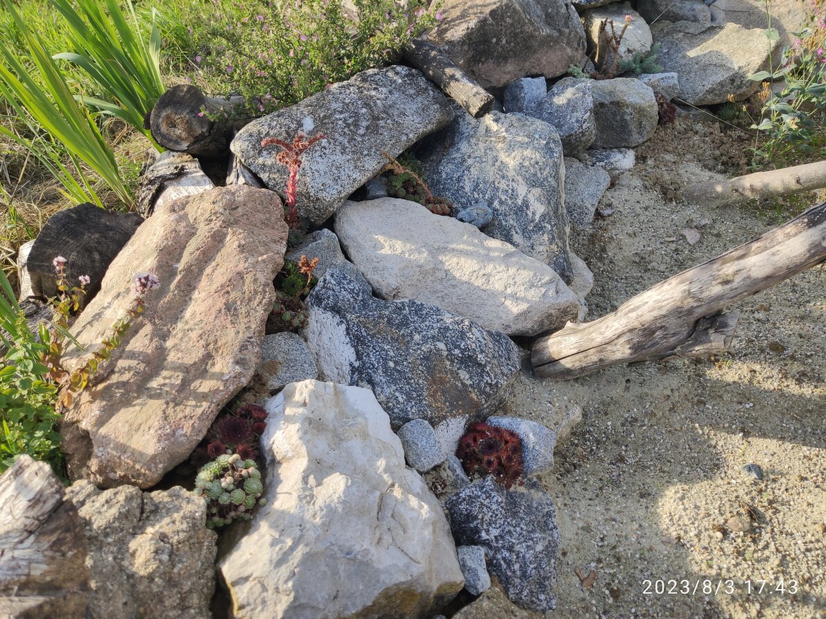 Heute habe ich noch ein paar Ableger von Sempervivum und Wollziest hingepflanzt, die mögen die verdammten Schleimer nicht !