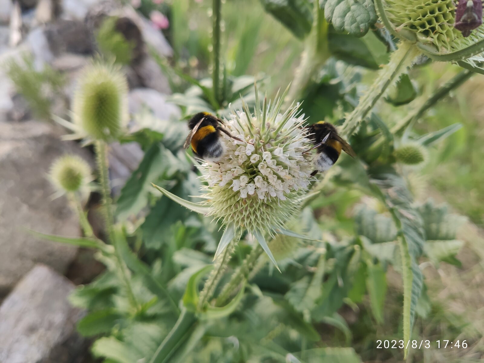 Der Boden war nun vom ganzen Regen schön aufgeweicht, so dass sich die Stöcke gut einschlagen ließen. Insgesamt gibt es derzeit 10 Ohrenkneifer - Niststellen in der Pufferzone. Im letzten Jahr hatte ich ganz viel Nachwuchs, sie werden dankbar angenommen.