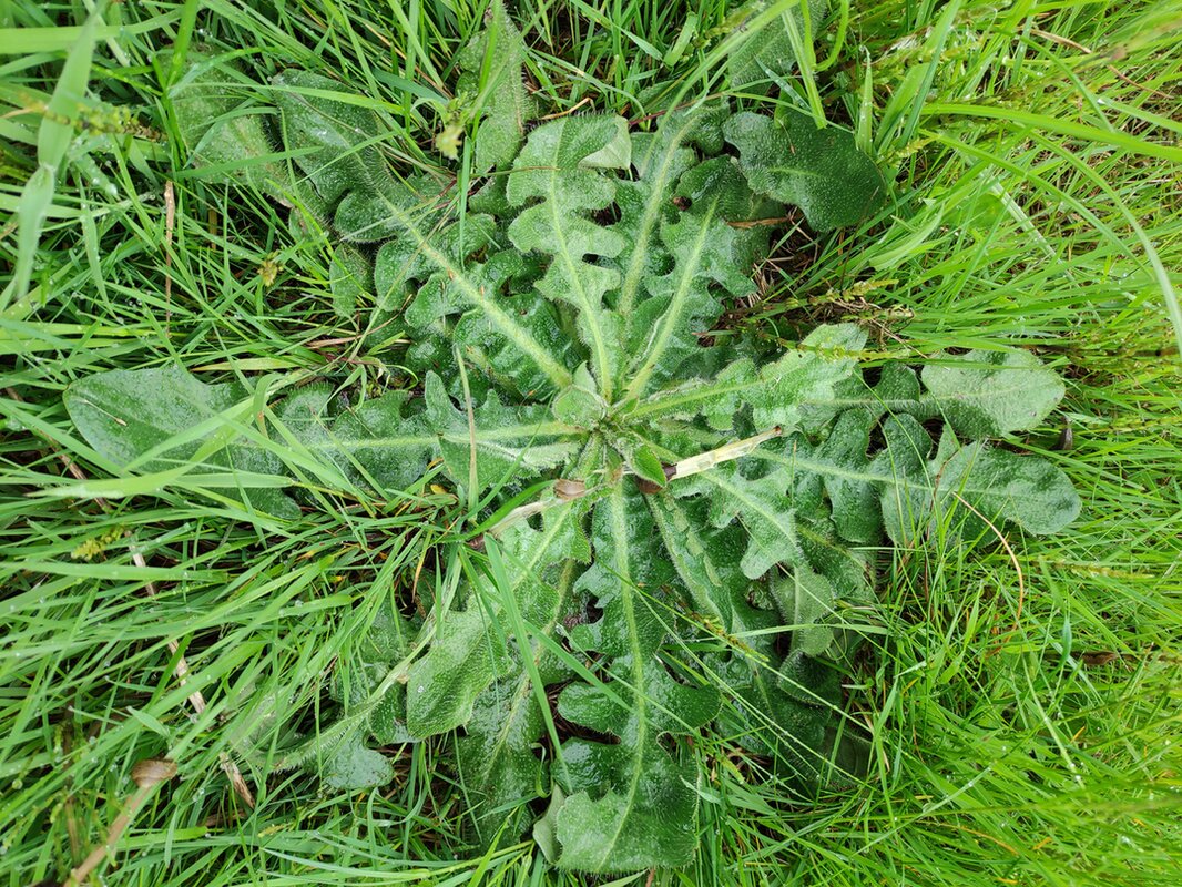 Das Ferkelkraut ist auch sehr dominant im Rasen.