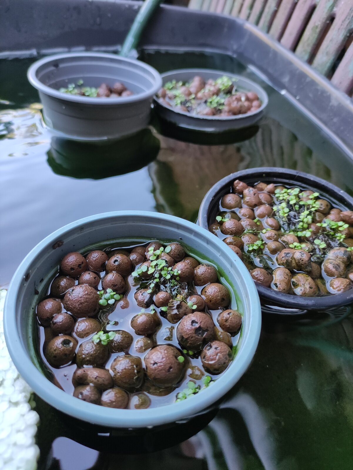 Ich hatte Brunnenkresse ausgesät und die Sämlinge stagnierten. Seit zwei Tagen stehen sie im fließenden Wasser und haben einen kleinen Wachstumsschub gemacht.