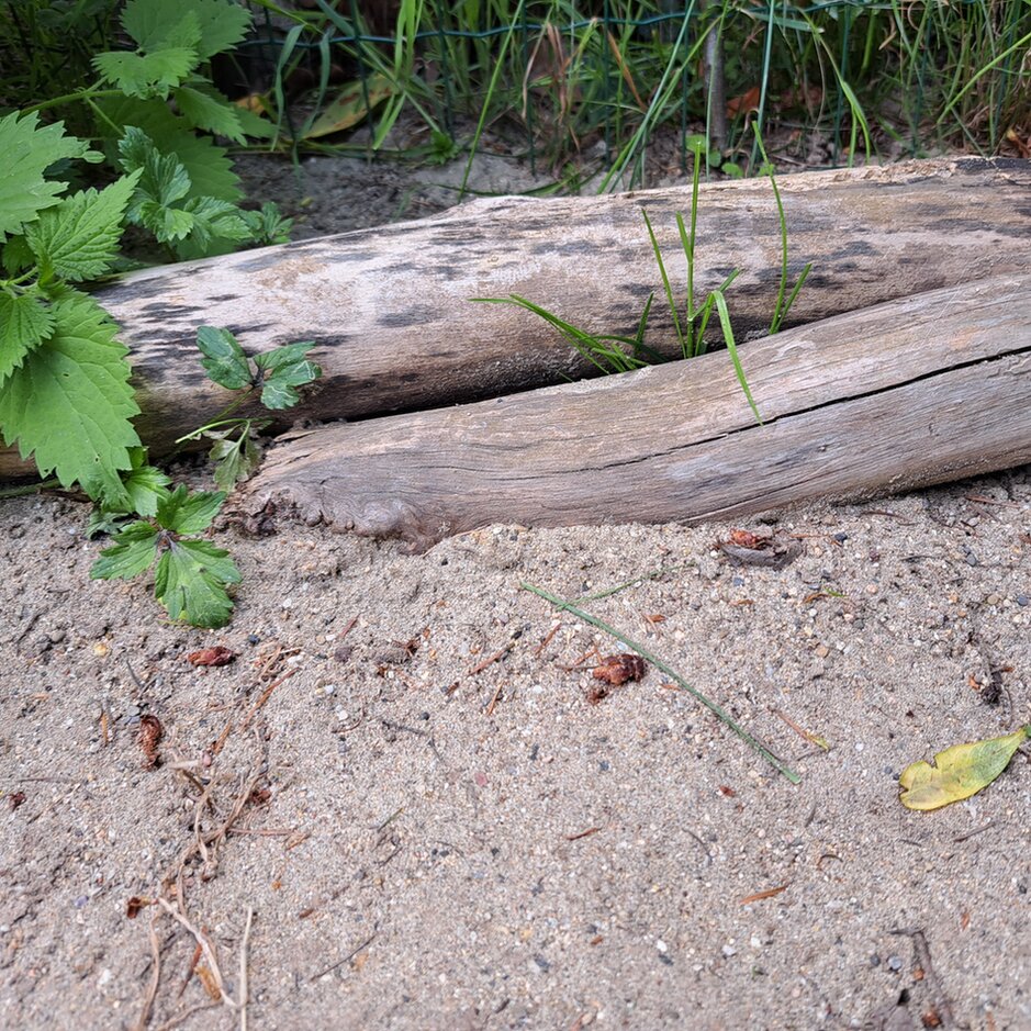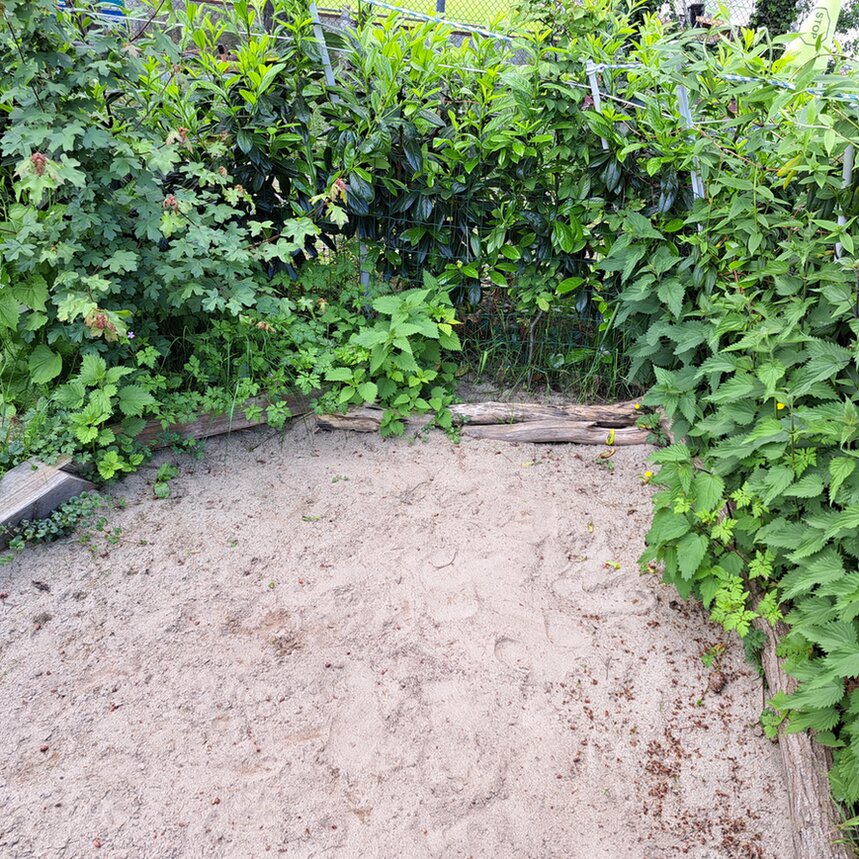 Sandarium, leider in der Mitte etwas kahl, weil unser Hund da gerne liegt. Die Ränder, die bewohnt sind, sind durch Brennnesseln geschützt.