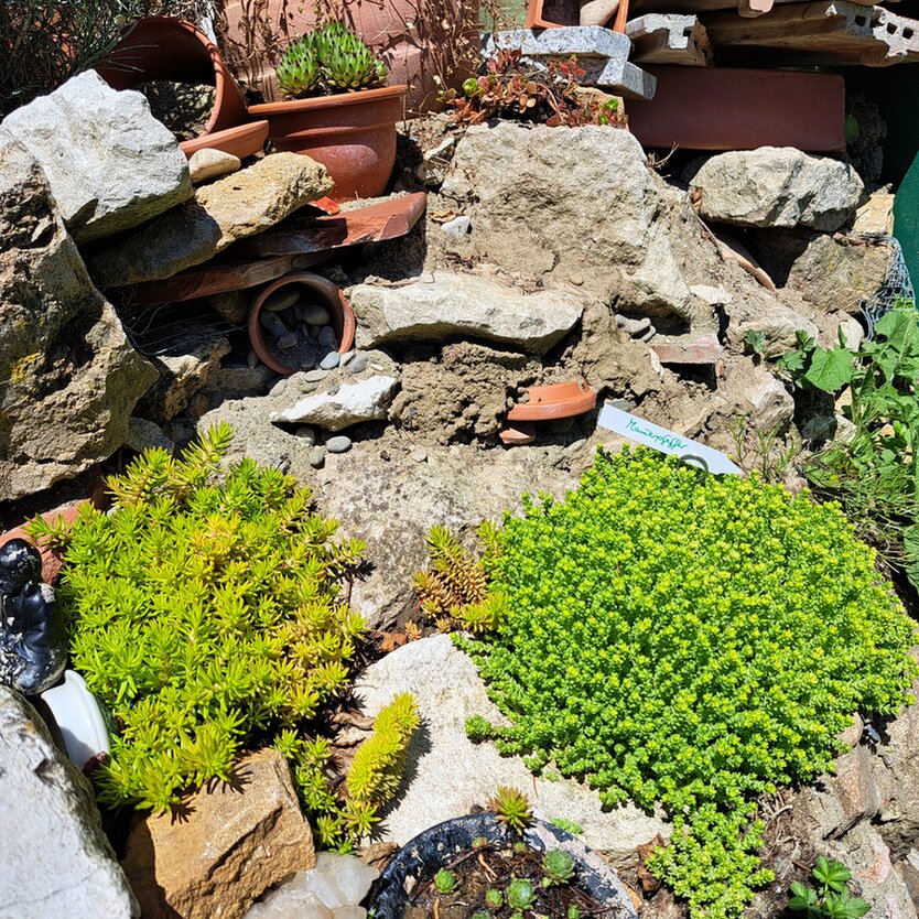 Vor dem Carport unter dem Hocker ist eine kleine grüne Fläche, ist das ein Sternmoos- Teppich? Ich kann es leider nicht genau erkennen auf dem Foto, sieht aber klasse aus! :thumb