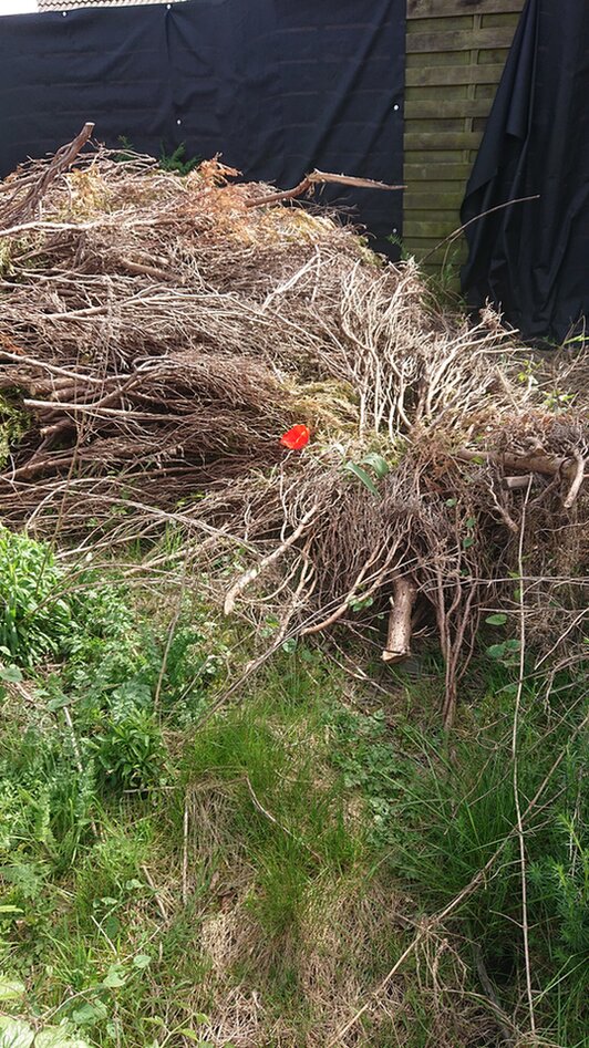 Im großen Haufen des Thujaschnitts hatte im Frühjahr auch eine einsame Garten Tulpe das Köpfen herausgesteckt.
