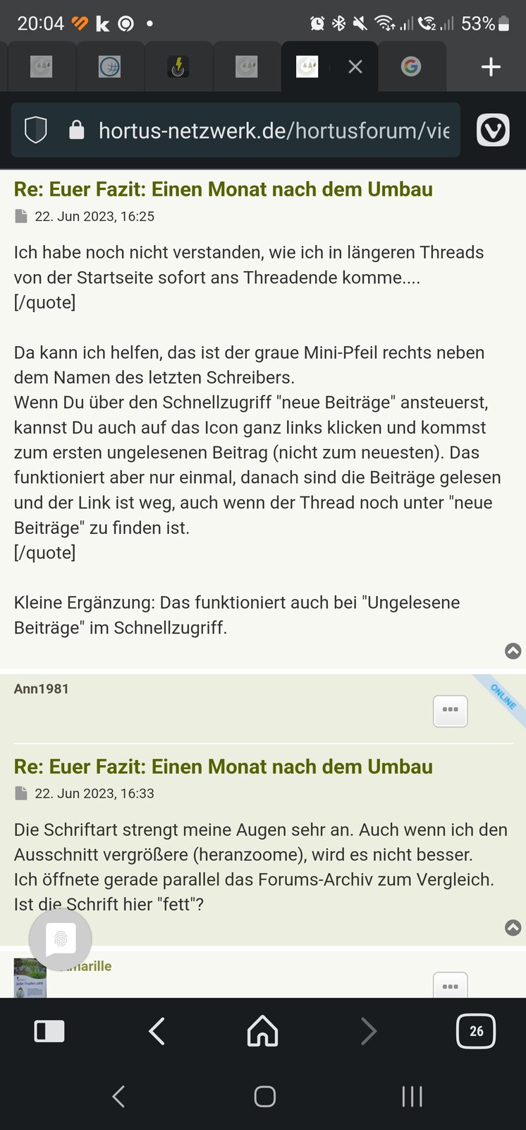 Das sind alles keine großen Dinge. Aber ich finde in Summe macht es das für mich nicht so klar und einfach strukturiert wie im Alten Forum.