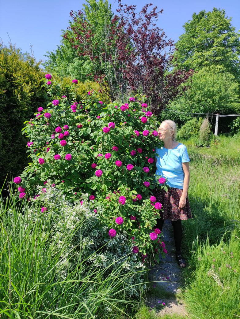 Die Rose de Resht ist eine schöne Rose und kann auch einen Garten zu duften. Aber denkt daran, das sie Platz braucht, ihr kennt ja unser Exemplar.