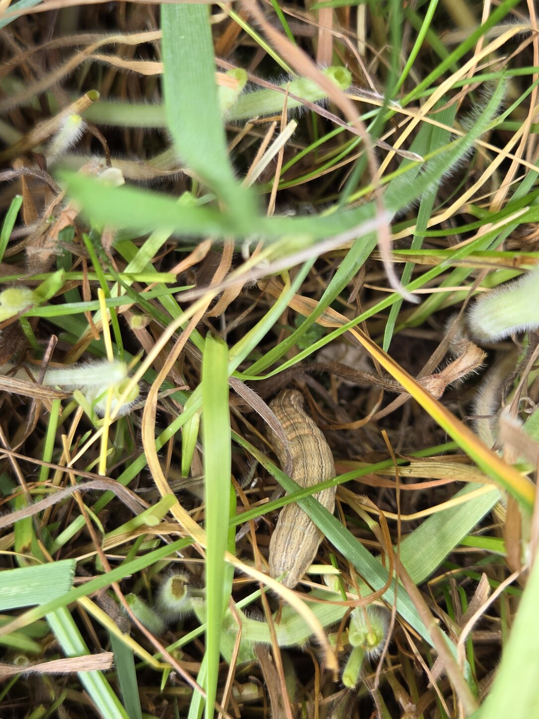 Dann wollte ich vorhin noch die vorne links im Bild sichtbare hohe Graskante außerhalb der Begrenzungssteine trimmen, als mich plötzlich eine Schachbrettraupe anguckt. Die ist ungelogen höchstens um einen Zentimeter meiner Grasschere entgangen... Tja, jetzt werde ich wohl mit der Graskante bis Ende August leben müssen (sagt jedenfalls pyrgus.de). Aber das ist es mir wert