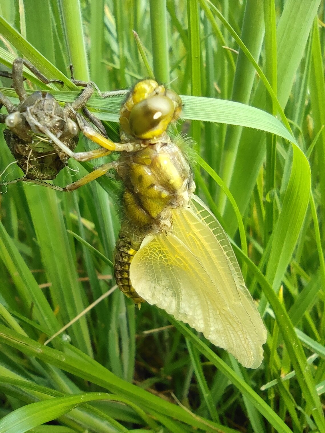 Am Tümpel ließen sich heute morgen mehrere frisch geschlüpfte Plattbauch-Libellen beobachten.