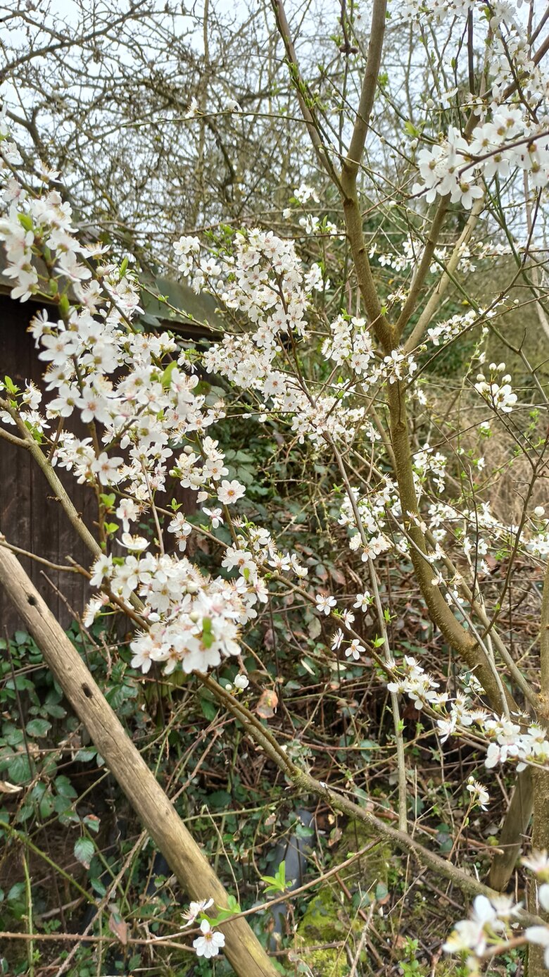 Lerchensporn hat sich ausgebreitet. Wilde Mirabellen duften schwer und süß. Die Schlüsselblume hat überlebt und hat zugelegt und der unermüdlich Rosmarin blüht auch schon wieder - oder immer noch.