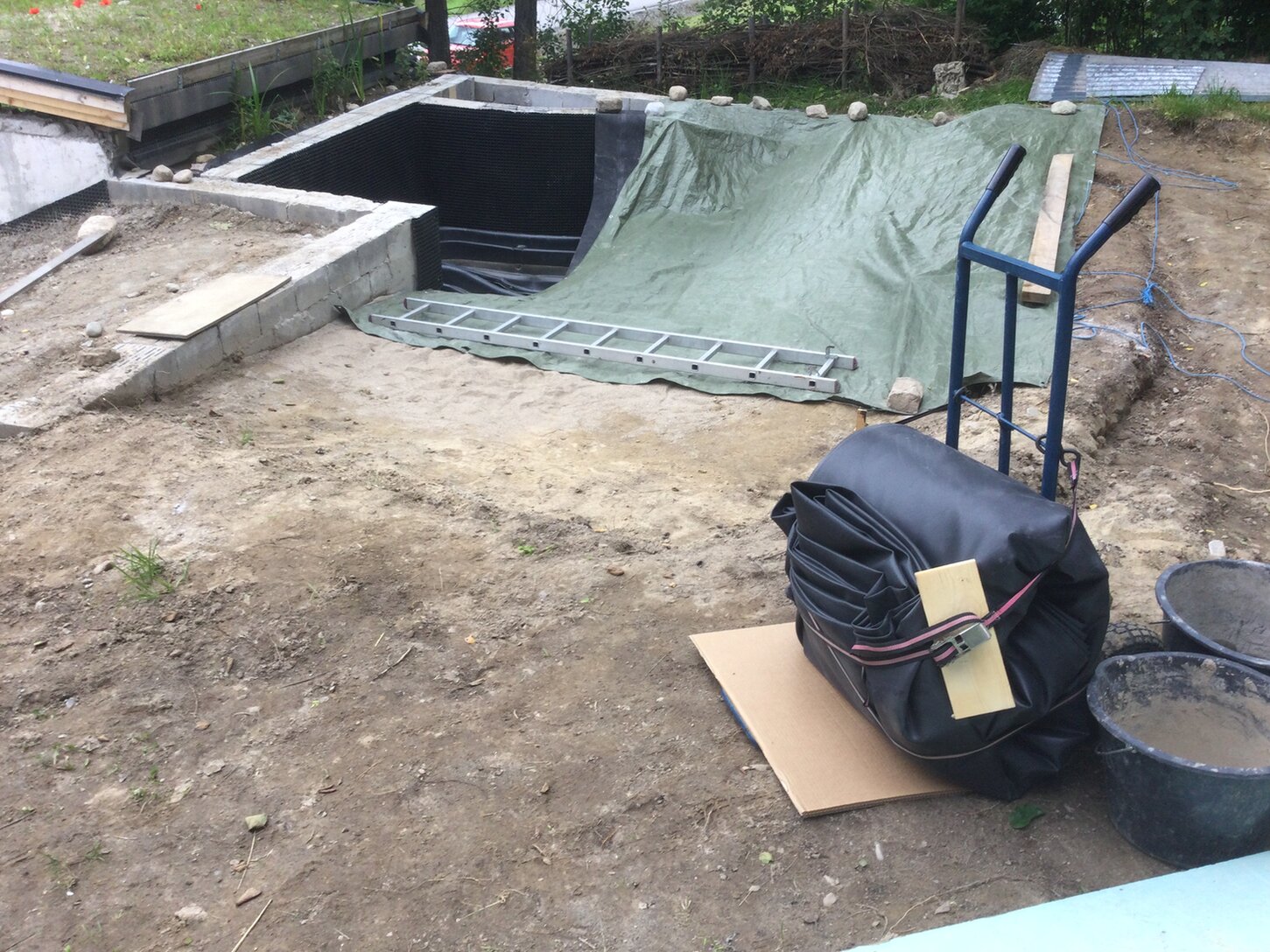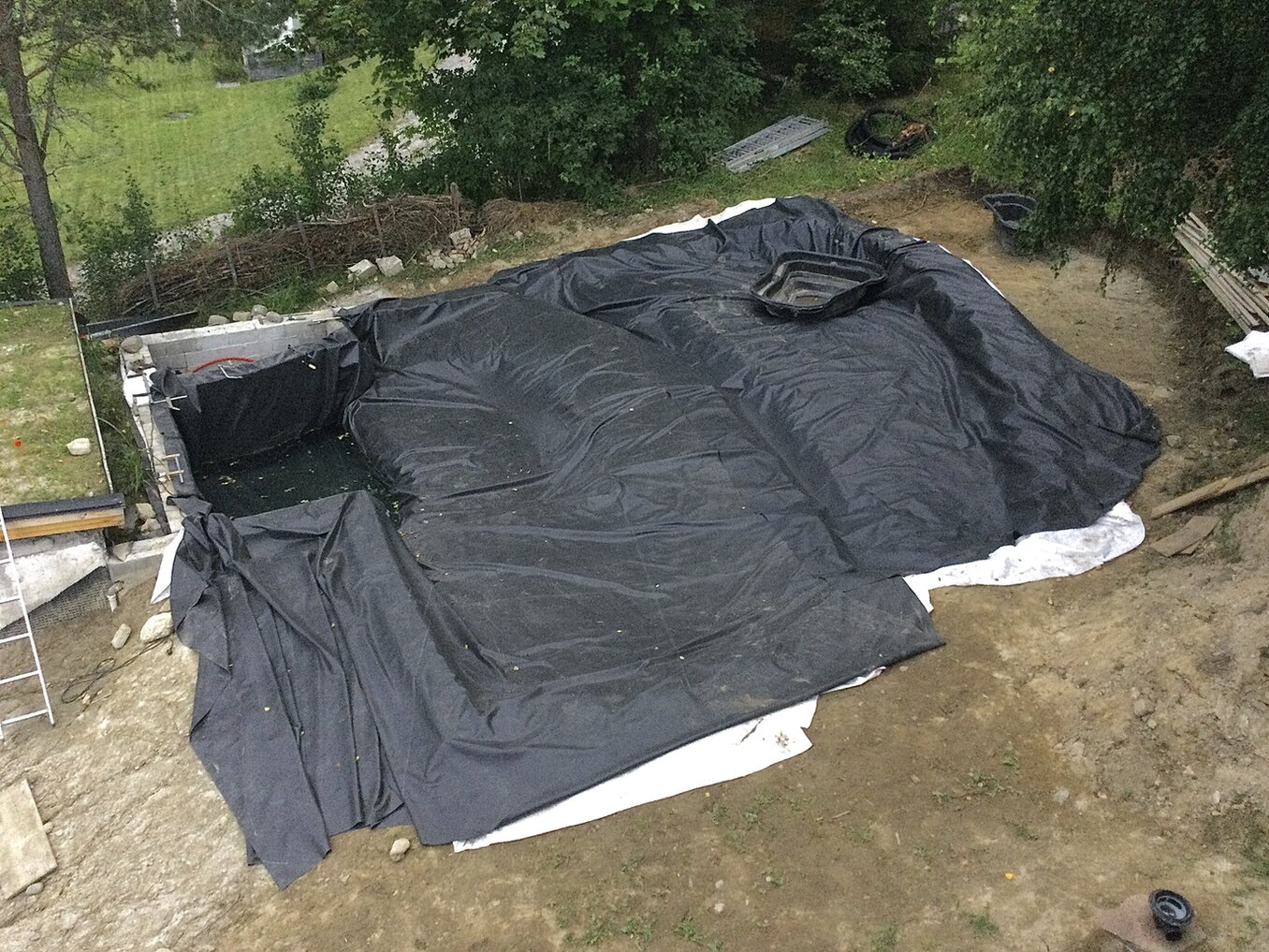 Sechs neue Pflanzen und 170 kg Teichfolie. :bravo Und jetzt wieder strømmender Regen.
