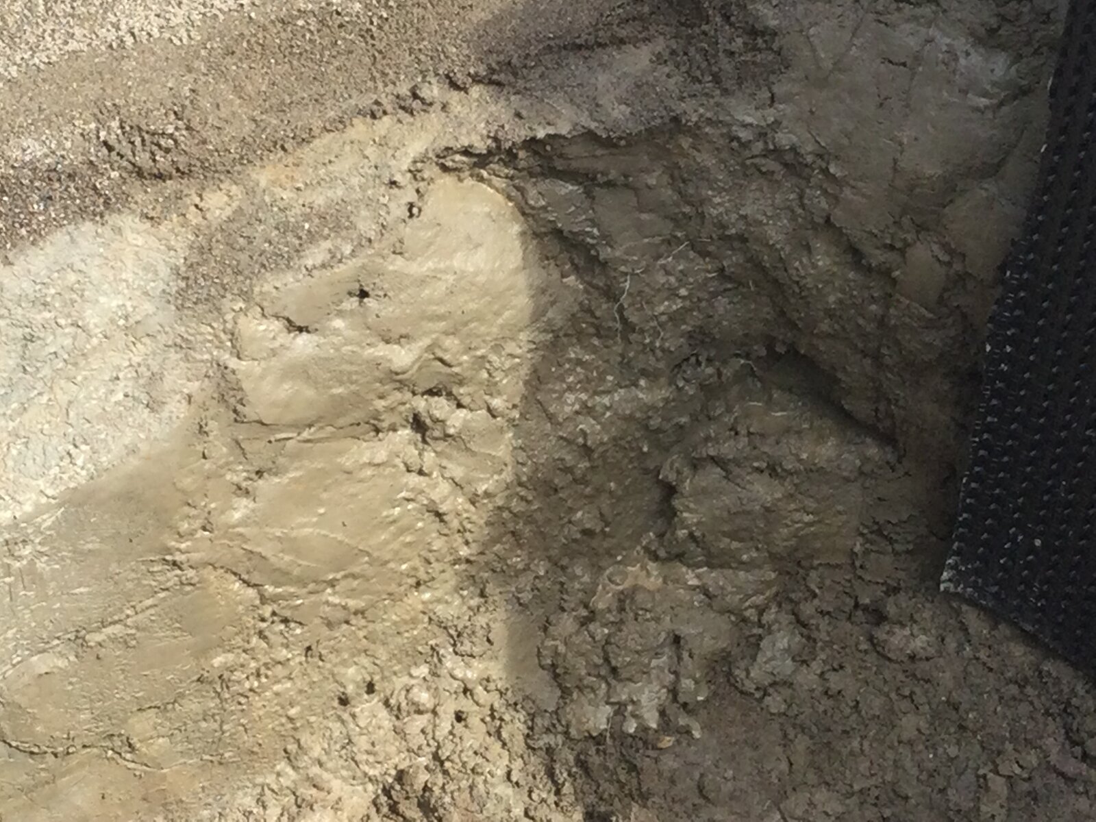 Zwei dünne Streifen habe ich verlegt und mit Mörtel geschlemmt, die schon teilweise getrocknet ist. Ich hoffe, dass es die Kante etwas Stabilität gibt. Man weiss ja nie wie lange das Wetter hält.... :flucht