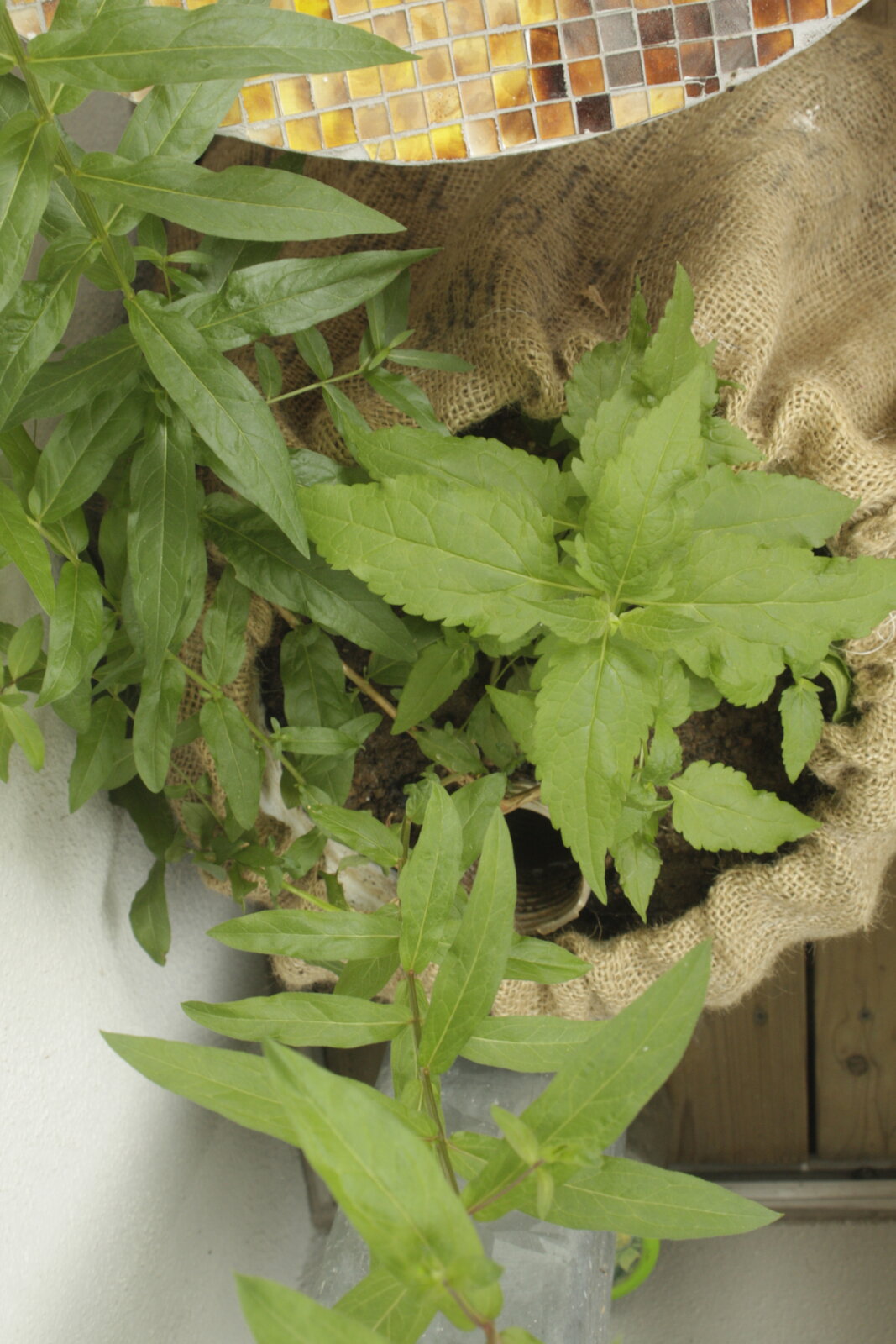 Der Wasserdost in dem Kübel war ja nicht geplant. Auf dem Balkon steht er, glaube ich, auch zu schattig. Die Pflanzen stehen so dicht beieinander (2cm), dass ich noch gar nicht weiß, wie ich sie ohne größere Schäden trennen kann.