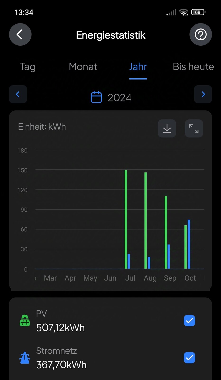 Immerhin im letzten Jahr mehr Strom aus der PV als aus dem Netz.
