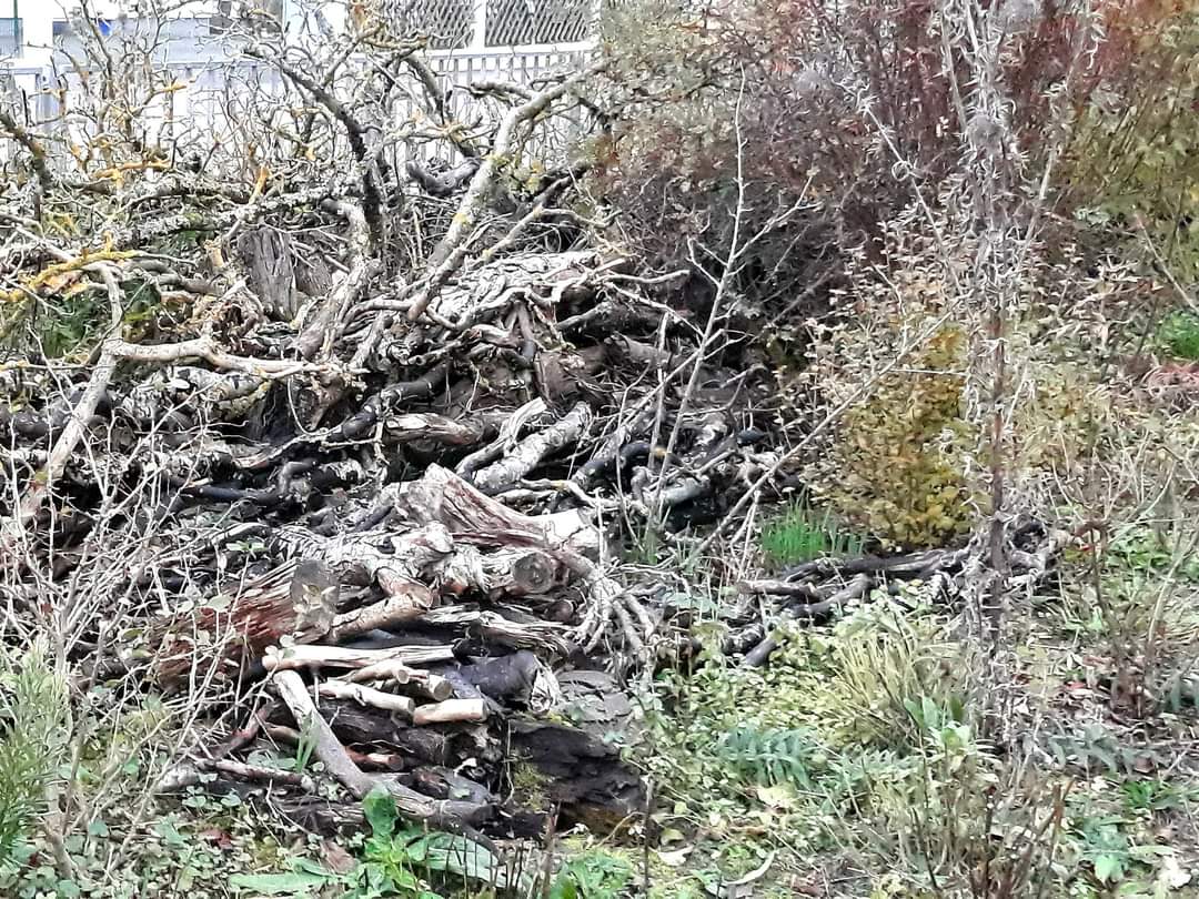 Die Beete und Wege versinken ab Herbst teilweise knietief in Laub und Grünschnitt, welche ich von benachbarten Flächen einsammle.