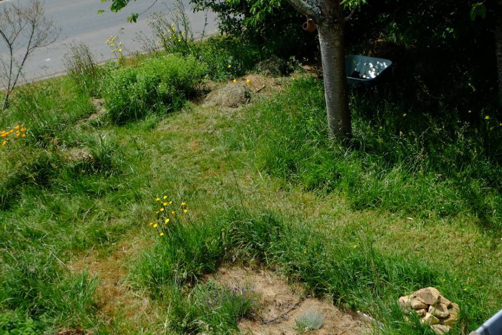 Steinhaufen als Naturmodule, ein Igelhaus wird bald gebaut.