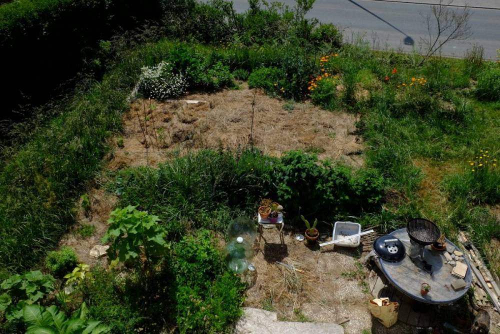 Rundherum viele Gärten, leider mit kurzgeschorenem Rasen und wenig Vielfalt. Hortus Atomium ist eine kleine Oase.