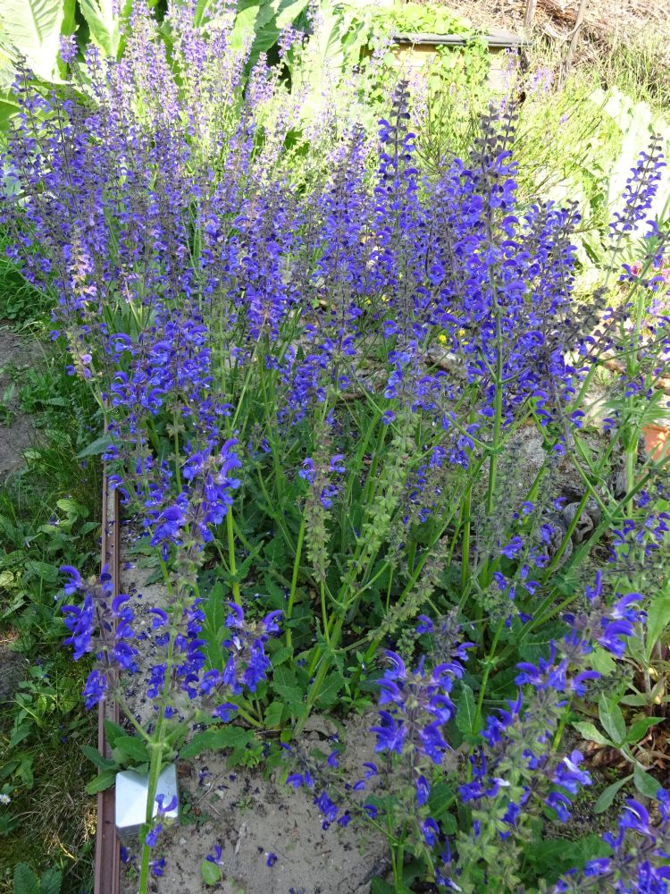 Der Salbei im Sandbeet blüht und vermehrt sich von Jahr zu Jahr.