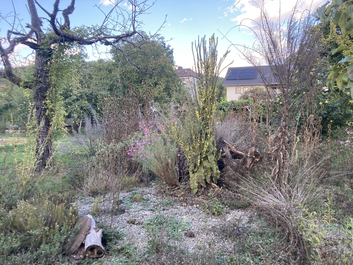 Der Garten wächst weiter, diesen Winter (2025) kommt noch ein neues Modul hinzu. Stein, Wurzel und ein kleines Feuchtgebiet, gepaart mit heimischen Pflanzen werden einen Platz füllen, der aktuell mit einem für Insekten unnützem Strauch bepflanzt ist. Noch bin ich am Material sammeln, aber bald geht es los.