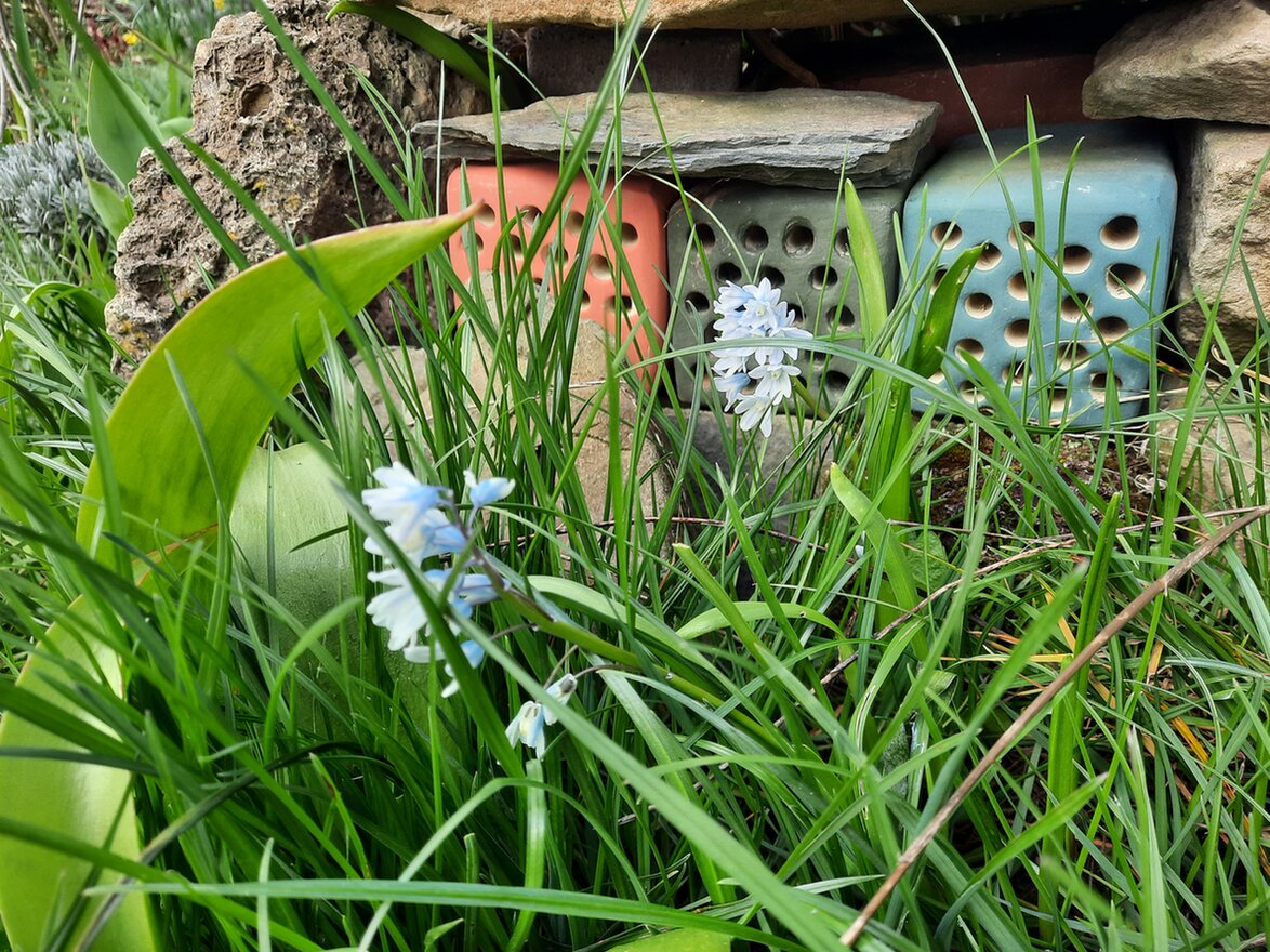 Parallel haben wir angefangen viele Blumenzwiebeln (besonders dunkelblaue Krokusse als Hummelmotels, wilde Tulpen, Traubenhyazinthen, Schneeglöckchen, Winterlinge), Lungenkraut, Zwerg-Iris und weitere Frühblüher anzupflanzen.