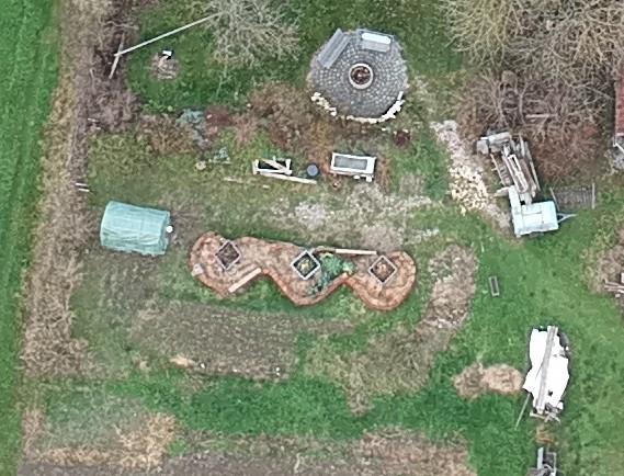 Auf dem Grundstück befindet sich ein sehr altes Bauernhaus, das renoviert wird, viele anfallende und unbelastete Baustoffe, die dort ausgebaut werden, versuchen wir auf dem Grundstück zu „verwerten“, Ziegel, Holz etc werden in Naturmodule etc umgewandelt – oder zwischengelagert.