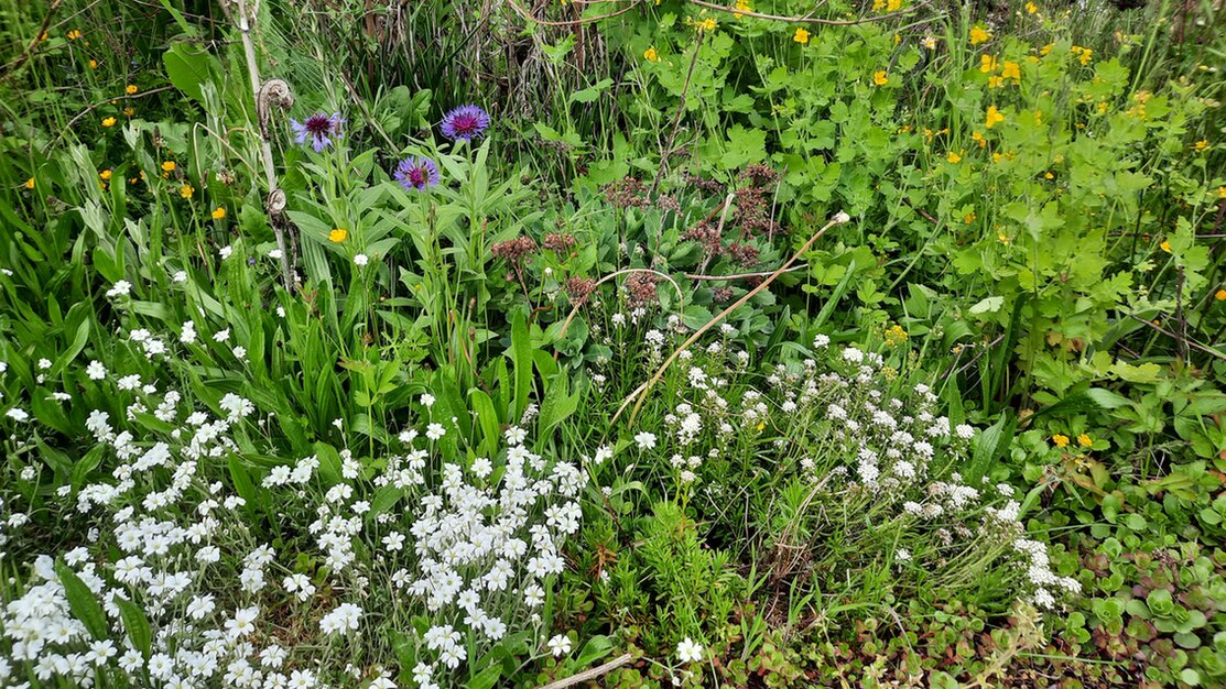 Die mysteriös selbst ausgesäte Wiesenmargeritenfäche macht sich :-)