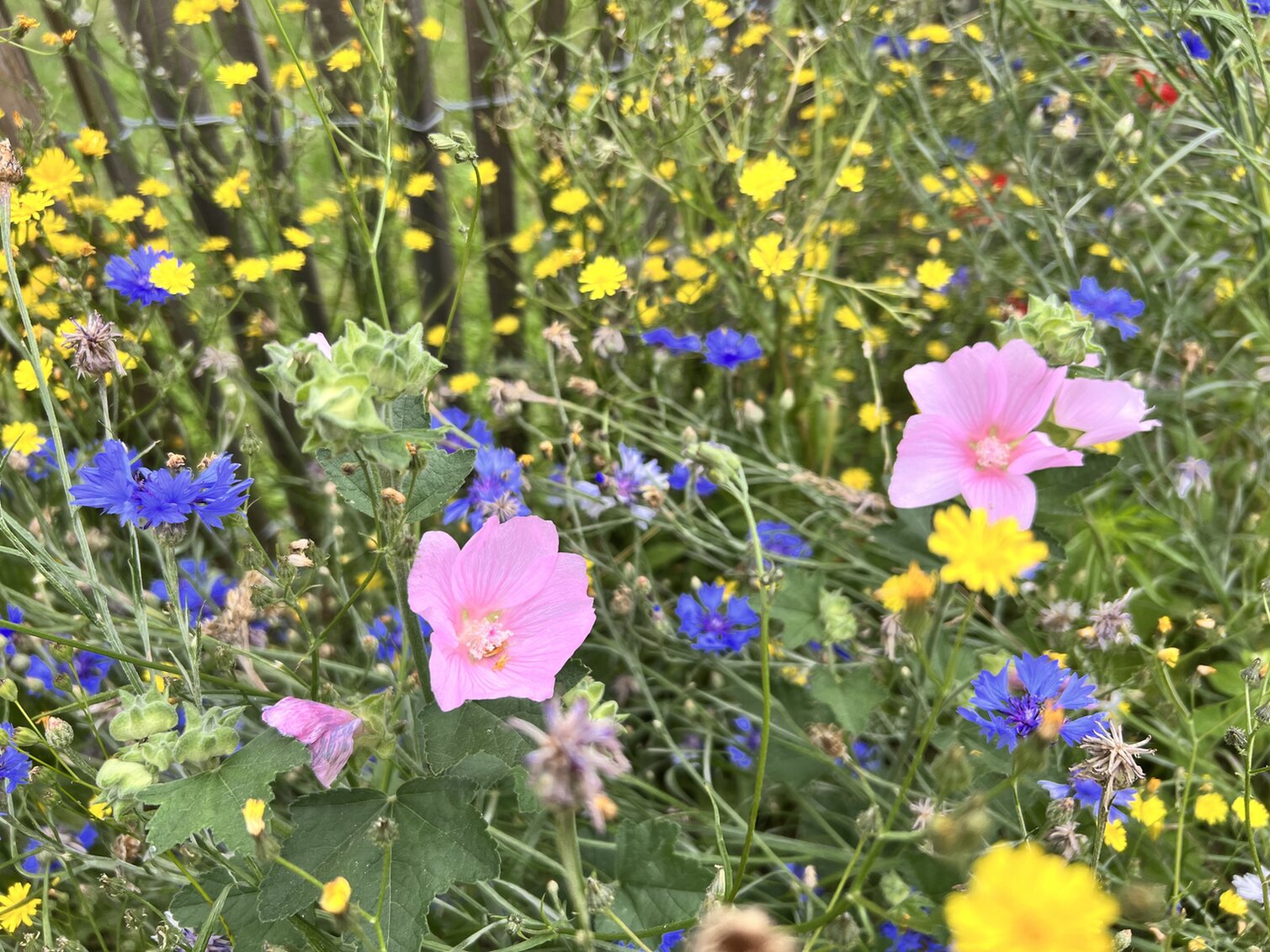 Es wurden in der Hotspotzone noch einige Bereiche mit Sand abgemagert und heimische Wildblumen gesät und gepflanzt. Inzwischen finden sich Flockenblumen, Färberkamille, Beinwell, Mutterkraut, Ackerwitwenblume, Steinklee, Natternkopf, Margeriten, echte Kamille, Hirtentäschel, Wegwarte, Moschusmalve, Thüringer Strauchpappel, Mohn, Blutweiderich, Johanniskraut, Schafgarbe, Herzgespann, echte (heimische) Goldrute, ausdauerndes Sandglöckchen, Staudenlein, Sandtyhmian, echter und Steppensalbei und vieles mehr.