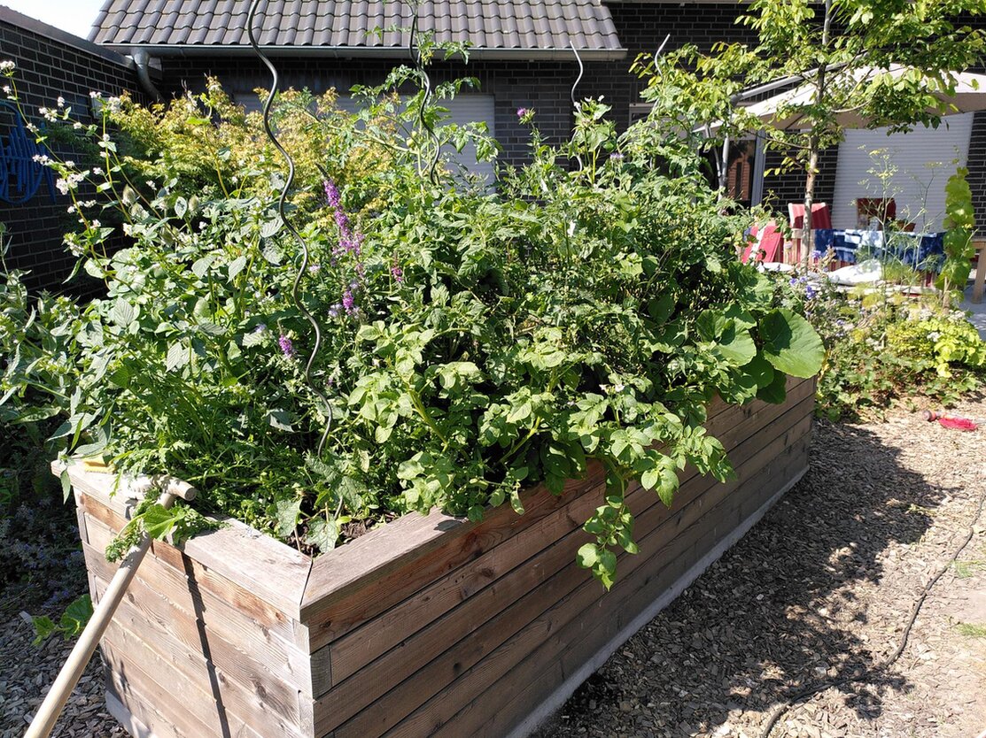 Ich mache das alles alleine, mein Mann arbeitet viel und kann nicht helfen. Gartenarbeit ist auch nicht so sein Ding. Den Schwimmteich allerdings habe ich mit meinem Vater angelegt.