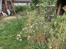 Wir haben das kleine Doppelhaus mit Grundstück 2018 gekauft. Zu dem Zeitpunkt sah der Garten ein bisschen aus wie ein Friedhof - mit ganz viel Thuja, Efeu und Eiben. Wir haben dann mit viel Enthusiasmus, aber ohne Gartenerfahrung erstmal viele Bücher über naturnahe Gärten gewälzt und dann Schritt für Schritt den Garten neu gestaltet.