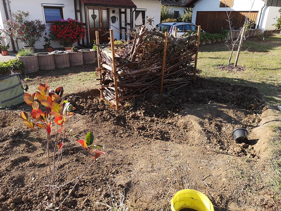 Die Thujas brachten die nötige Grundlage für eine Benjeshecke