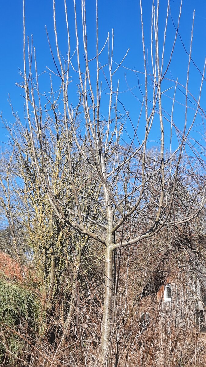 leider habe ich in den vergangenen zwei Jahren den Schnitt unseres vor 4 (?) Jahren gepflanzten Hochstamm-Apfels unterlassen. Jetzt ist ja gerade noch die Zeit für einen Schnitt, aber ich fühle mich da immer etwas überfordert. Und jetzt sieht der Apfelbaum halt auch ziemlich schlimm aus...