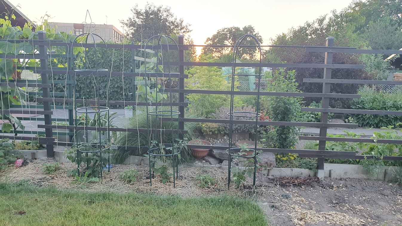 *Der Garten liegt in einer Kleingartenanlage, ist entsprechenden Vorgaben und Verboten der Bepflanzung gebunden.