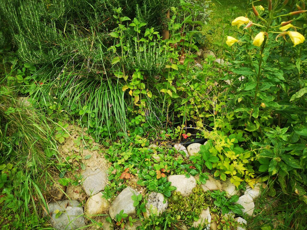 Nach zwei Jahren habe ich endlich eine Hotspotsspirale, mit Eidechsen Burg angelegt. Auch hier sind die Nachtkerzen stark vertreten, aber es wird nach und nach bepflanzt, sehr zu Freuden der Schnecken, was leider den Fortschritt verlangsamt.